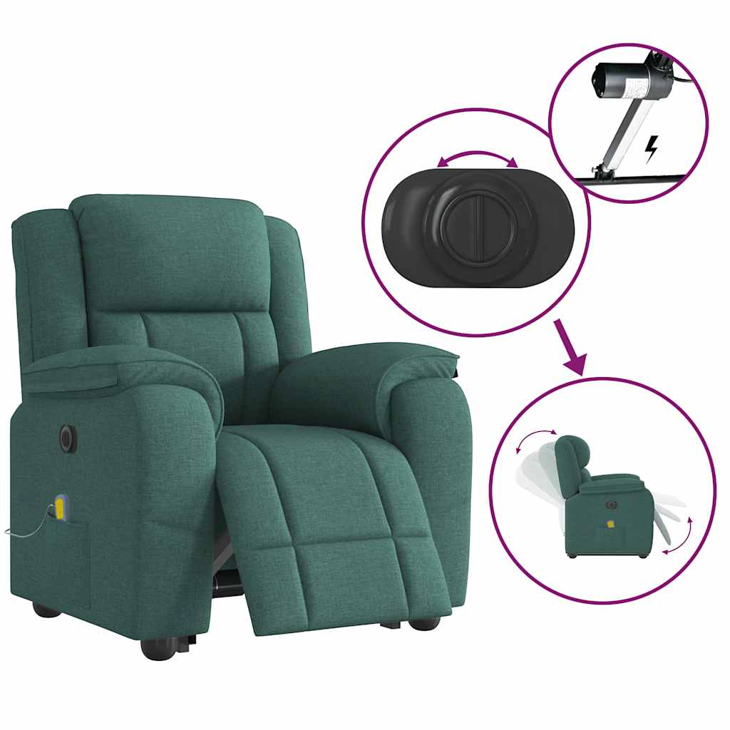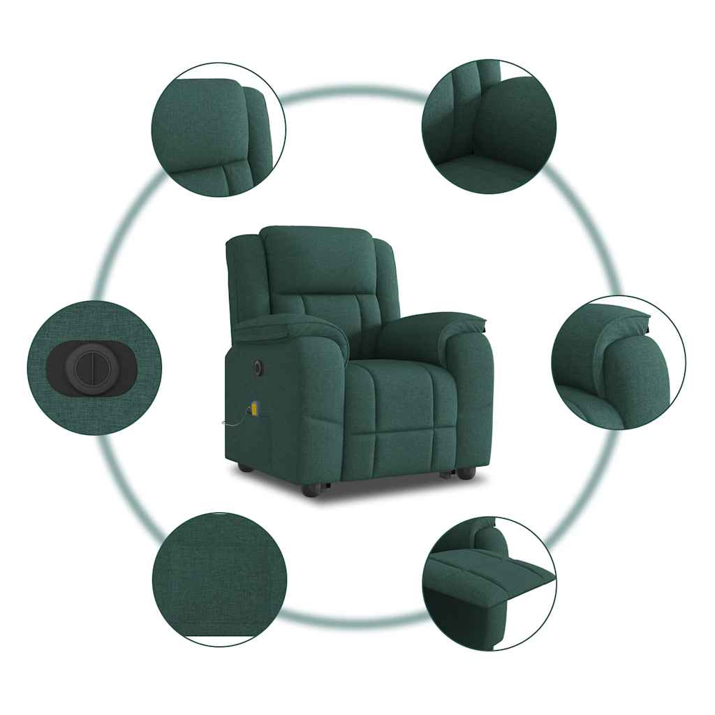 Fotoliu electric masaj rabatabil / ridicare verde închis textil