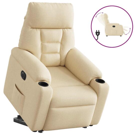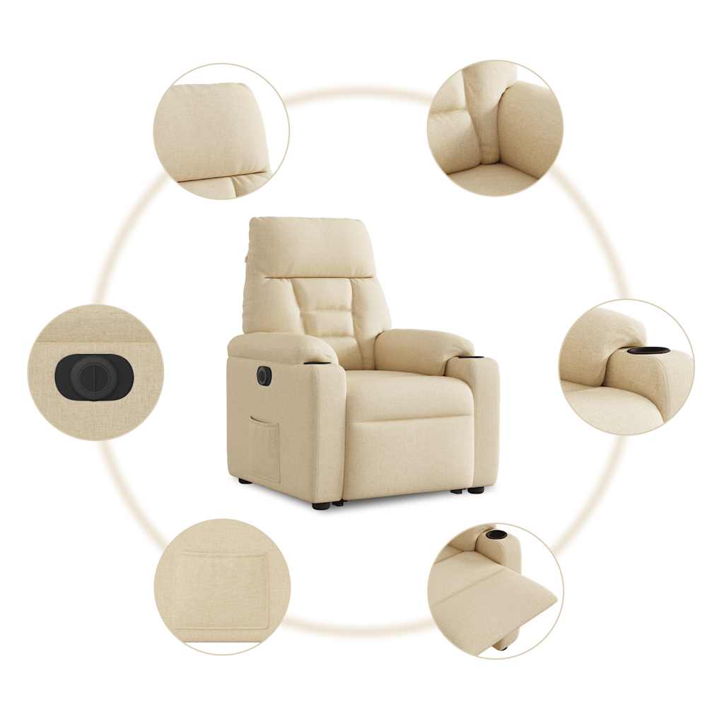 Fotoliu electric rabatabil cu ridicare, crem, textil