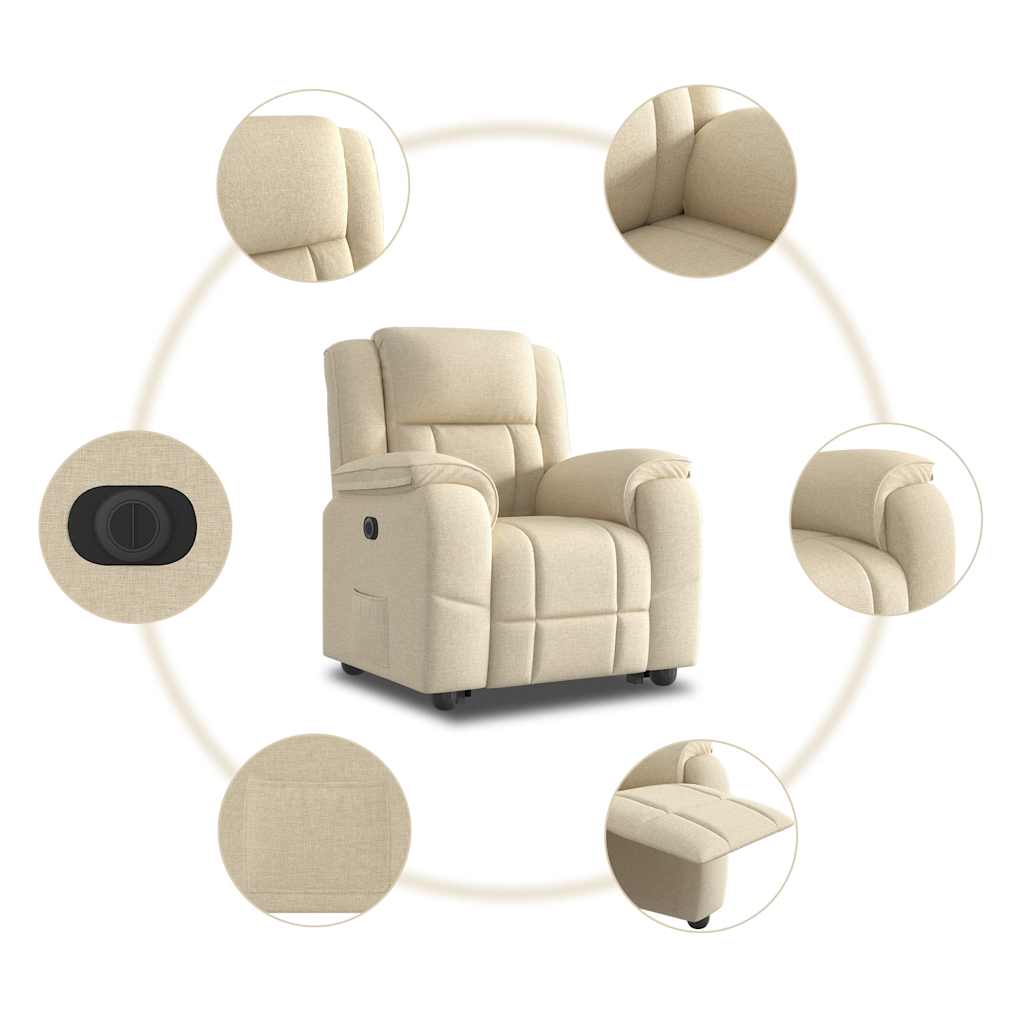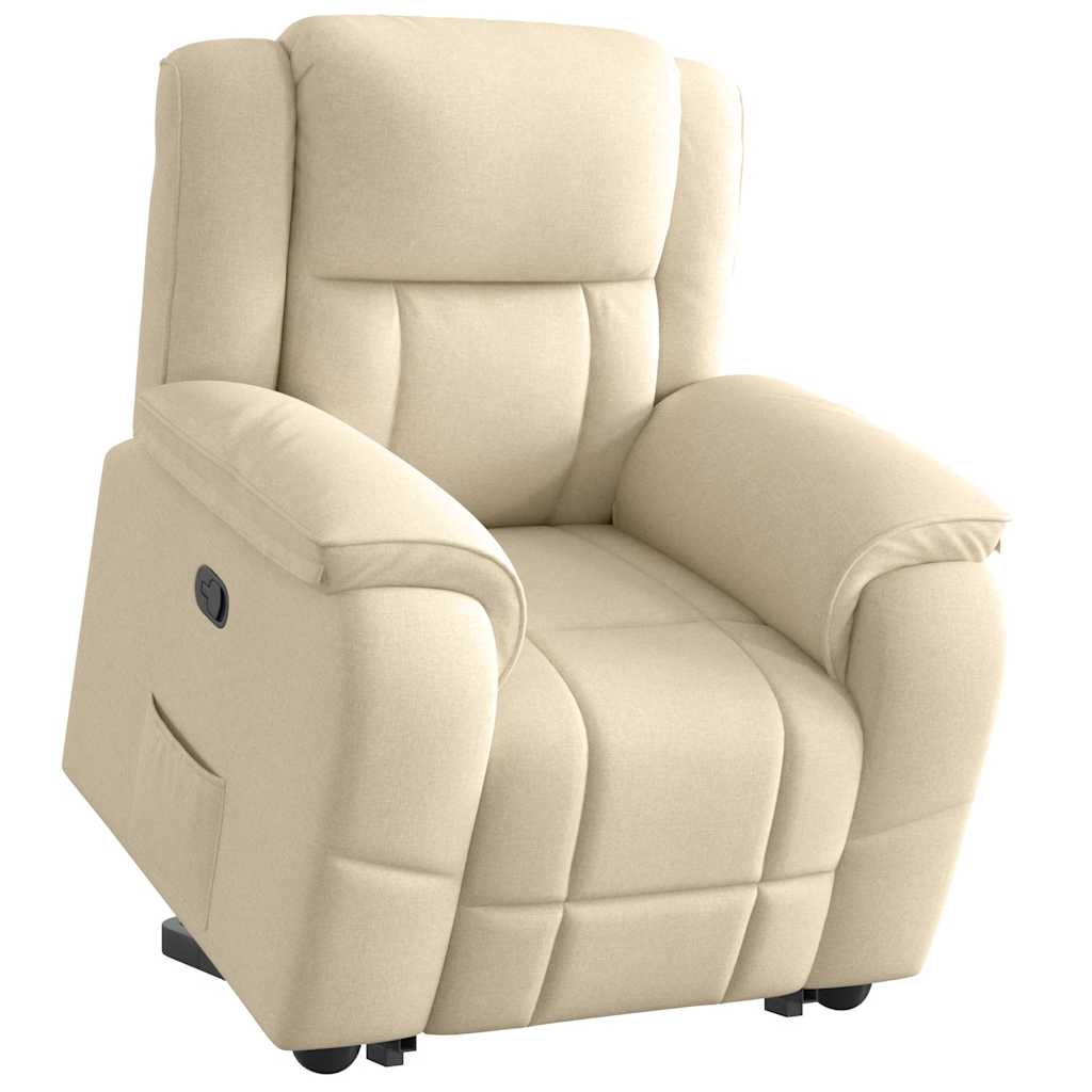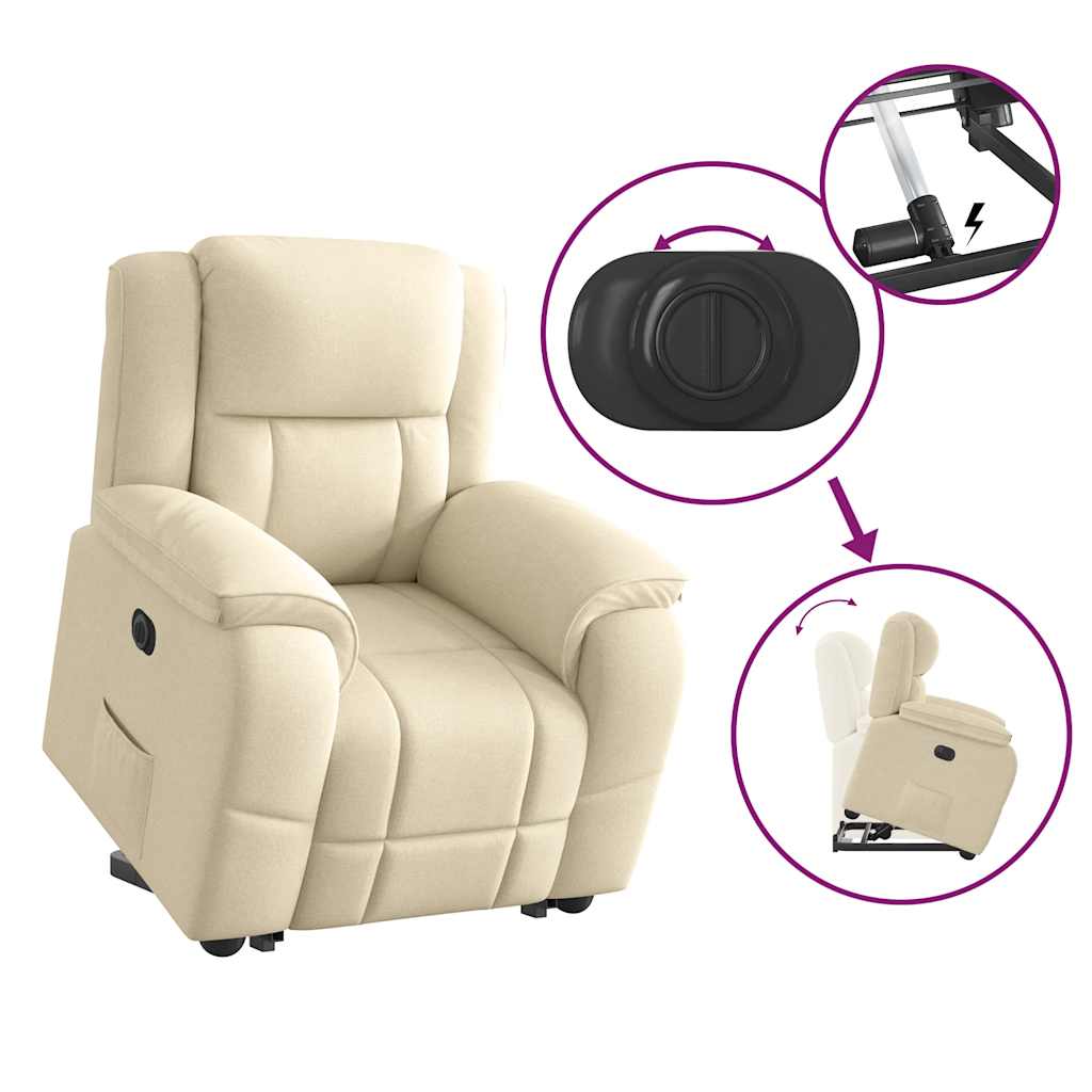 Fotoliu electric rabatabil cu ridicare, crem, textil