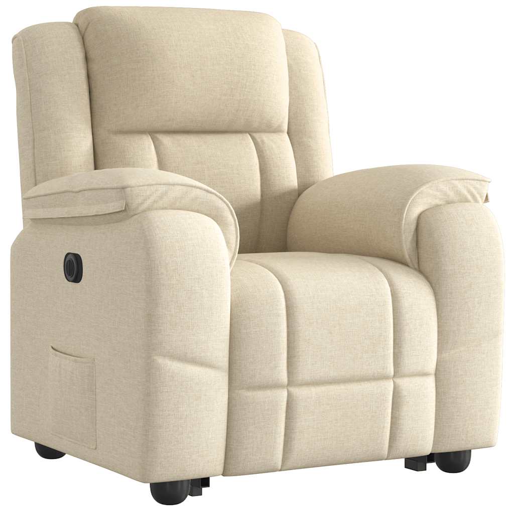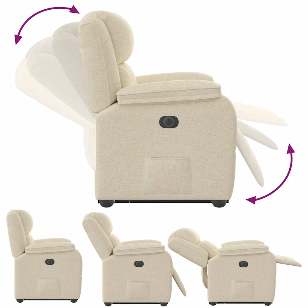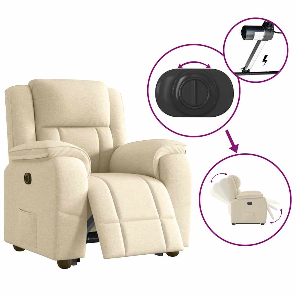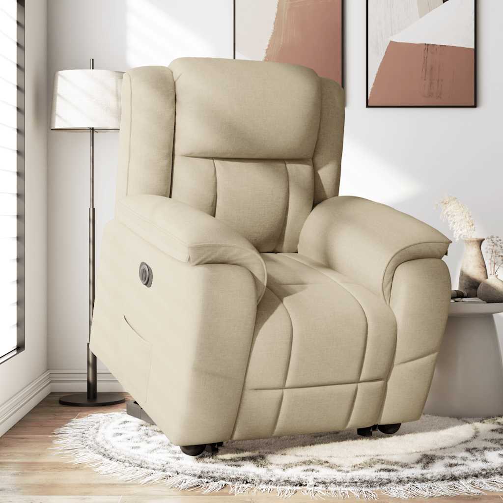 Fotoliu electric rabatabil cu ridicare, crem, textil