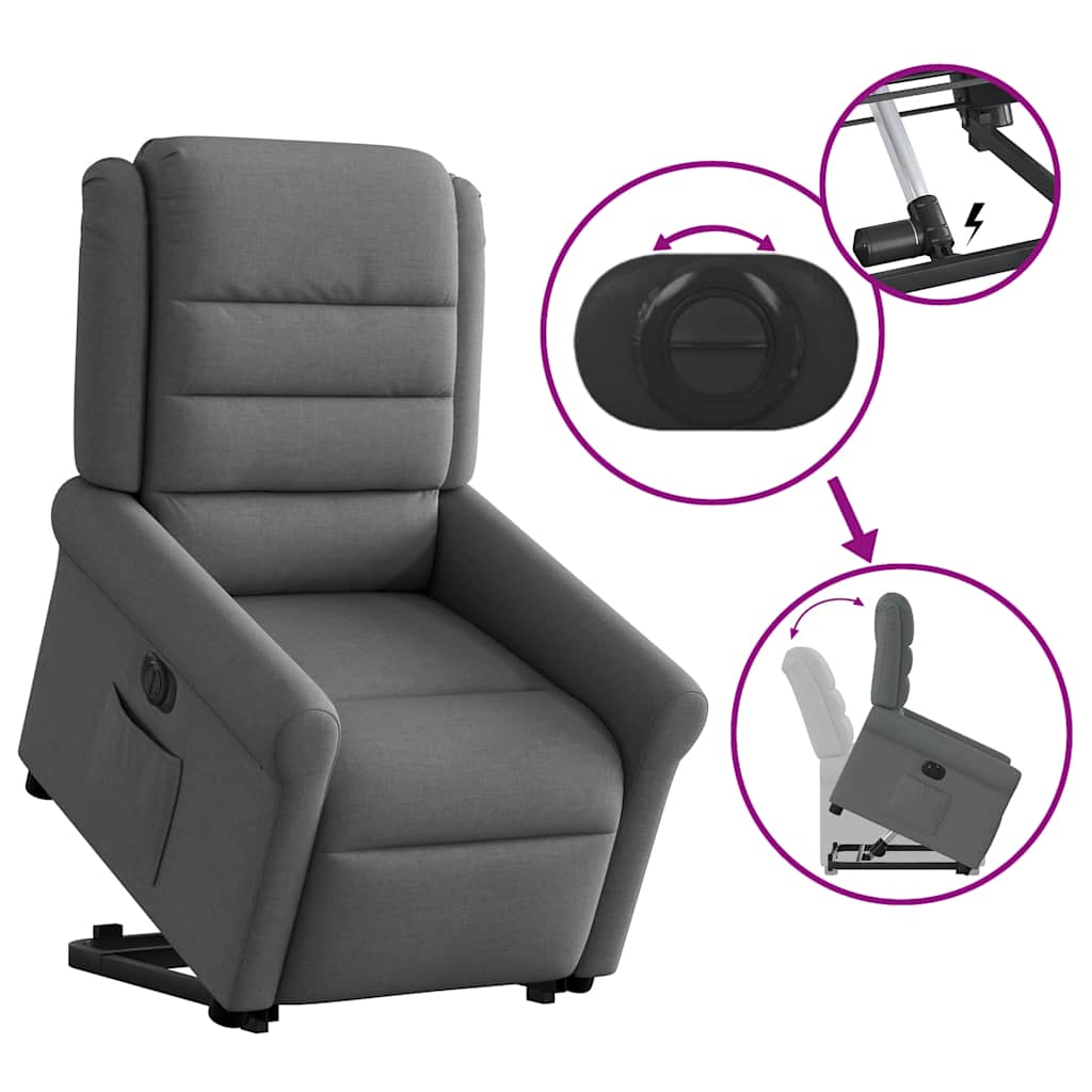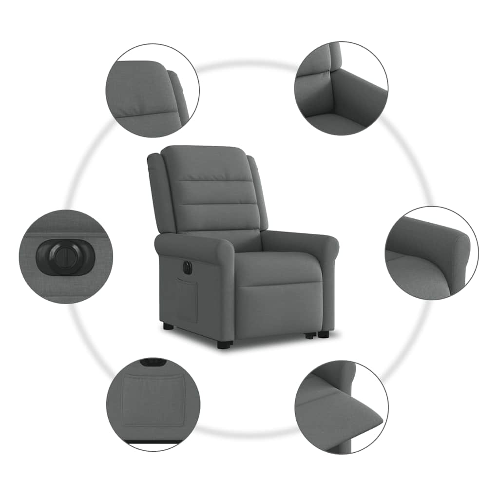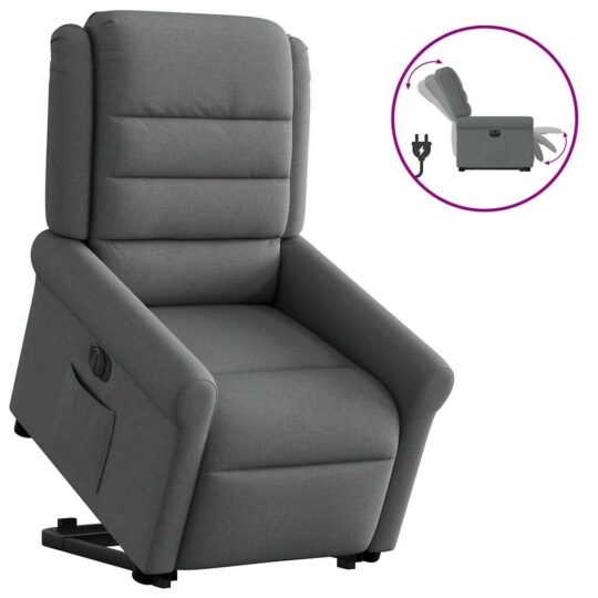 Fotoliu electric rabatabil cu ridicare, gri închis, textil