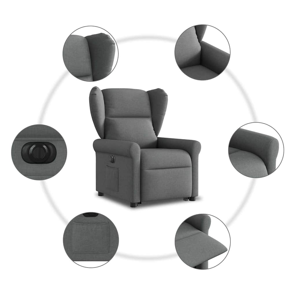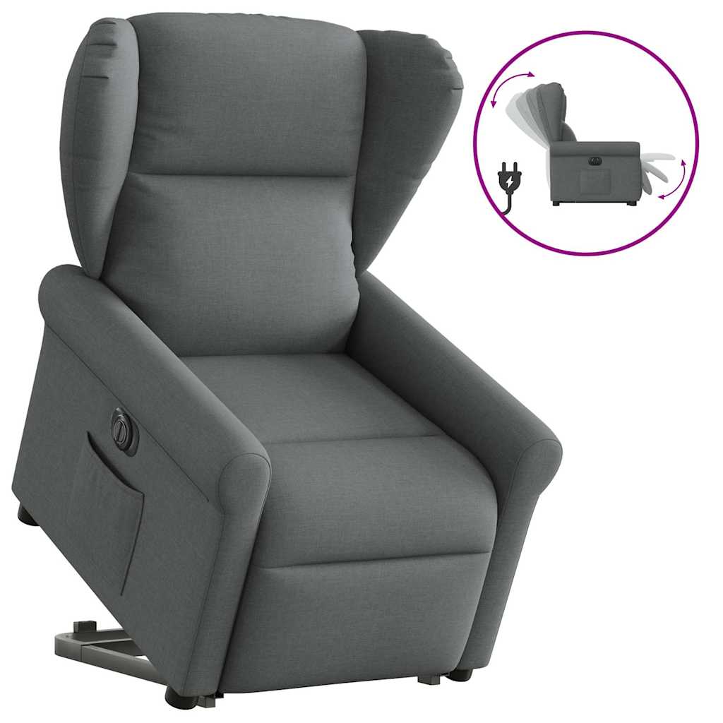 Fotoliu electric rabatabil cu ridicare, gri închis, textil