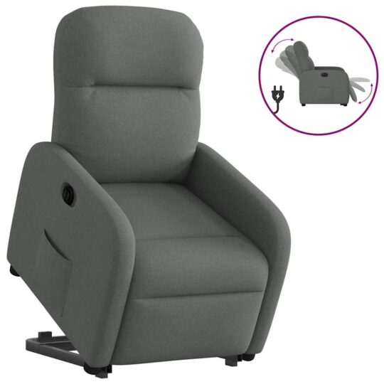 Fotoliu electric rabatabil cu ridicare, gri închis, textil