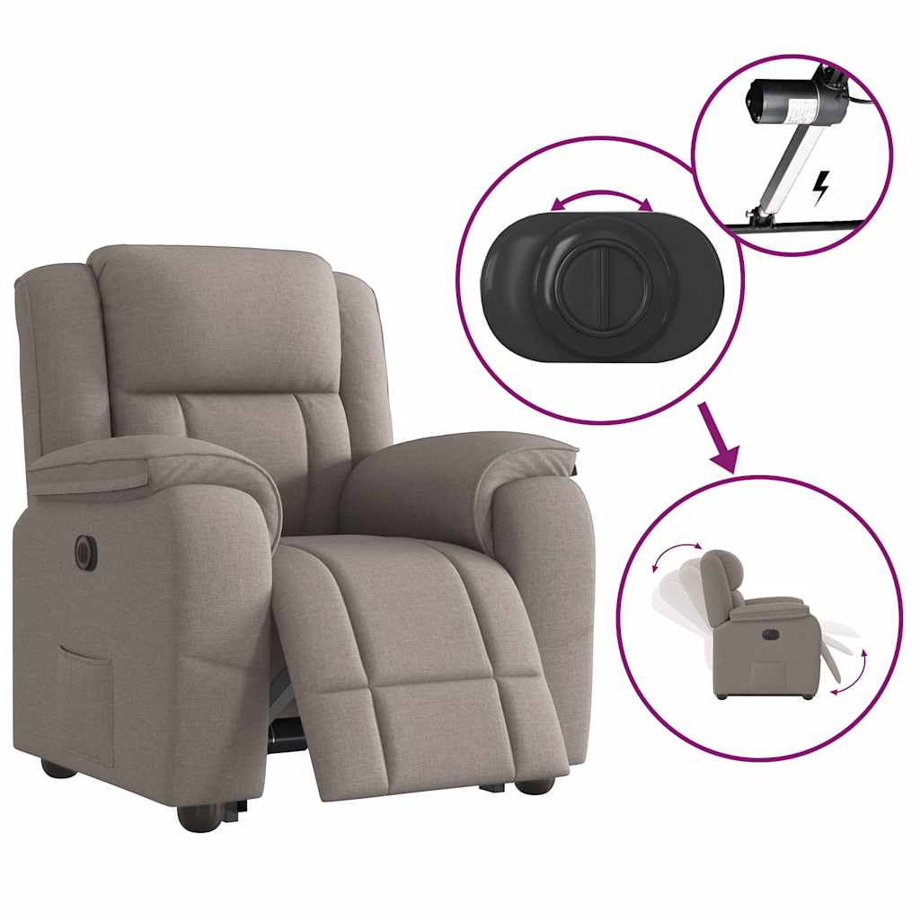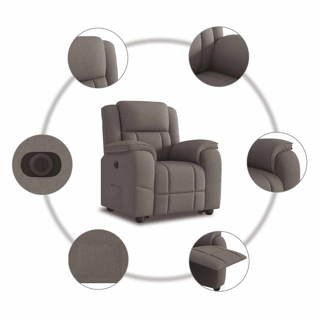 Fotoliu electric rabatabil cu ridicare, gri taupe, textil