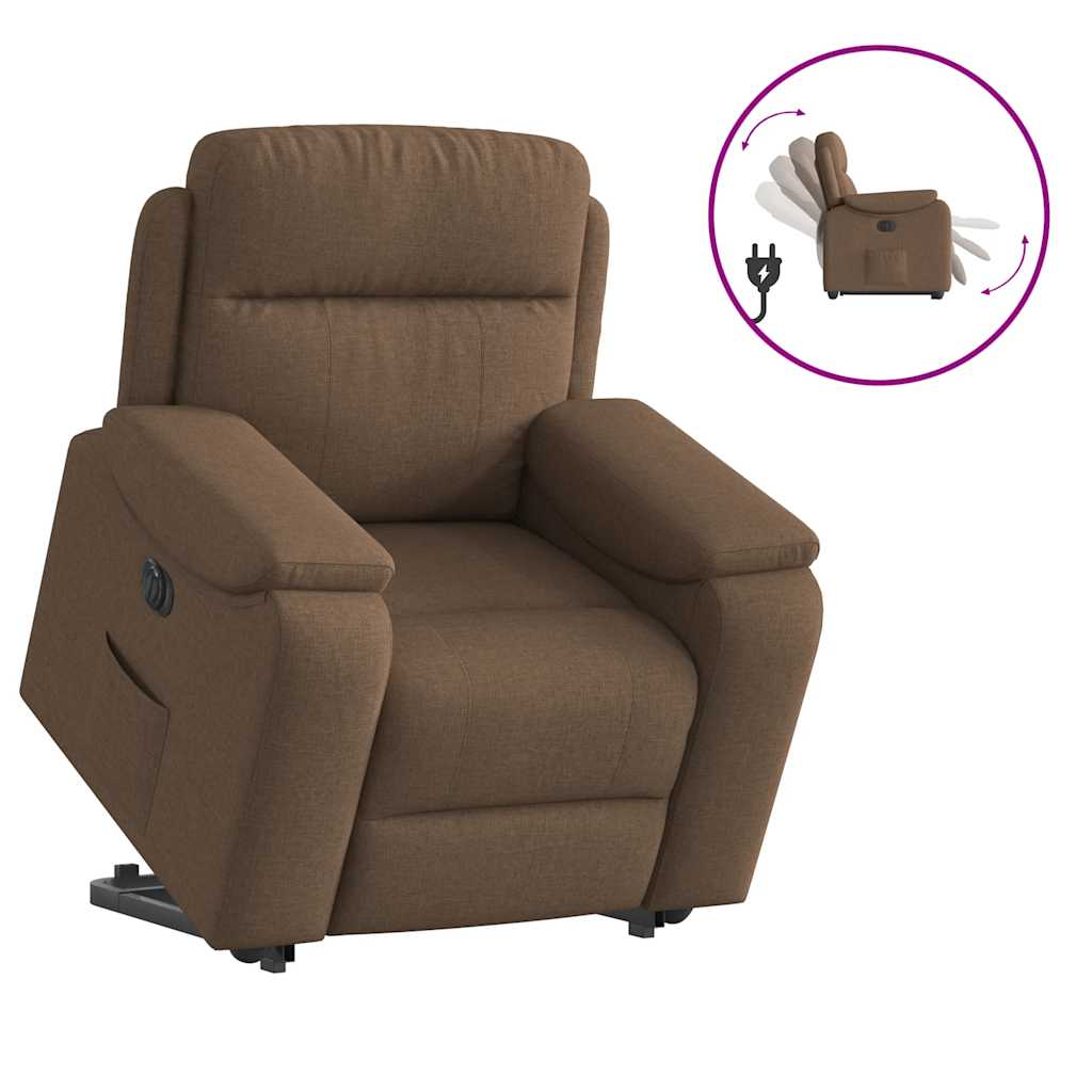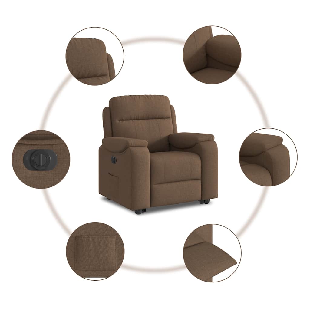 Fotoliu electric rabatabil cu ridicare, maro, textil