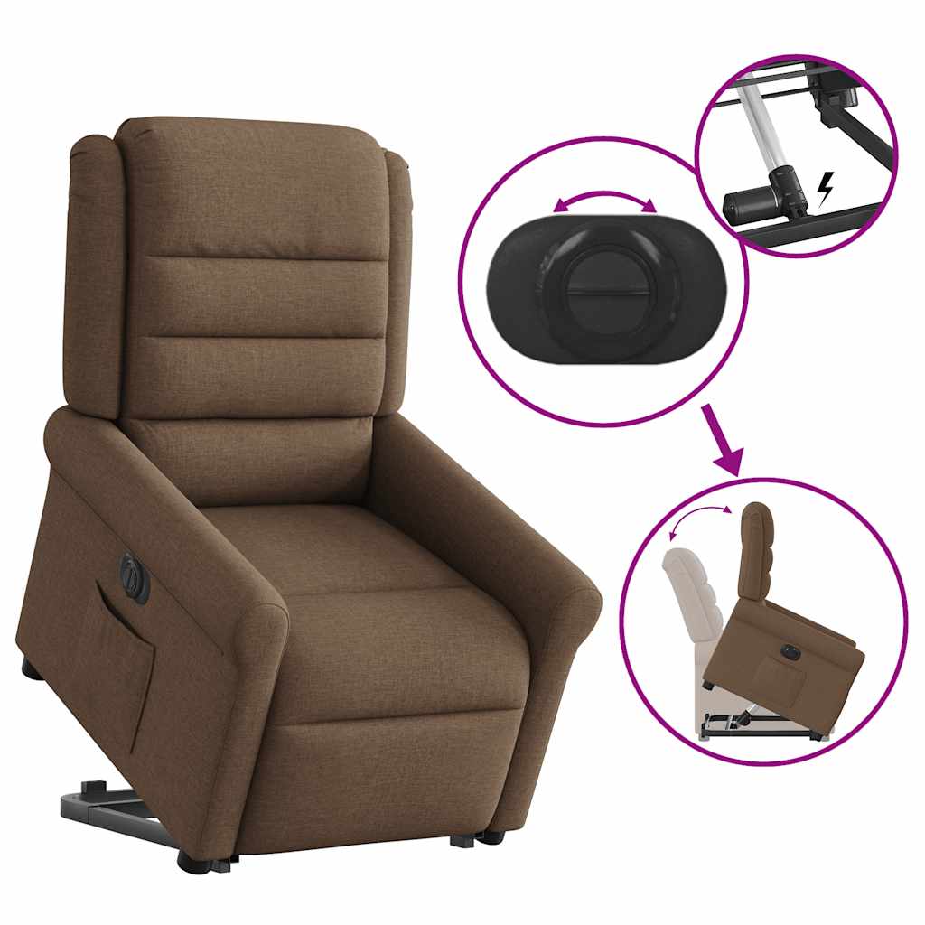 Fotoliu electric rabatabil cu ridicare, maro, textil