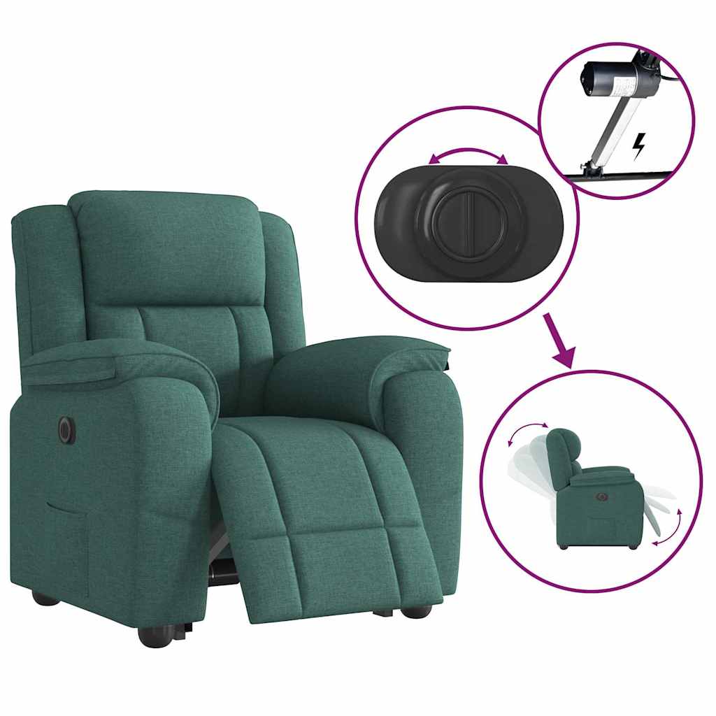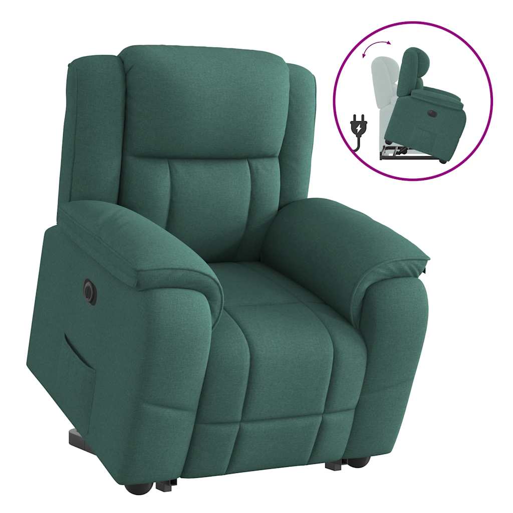Fotoliu electric rabatabil cu ridicare, verde închis, textil