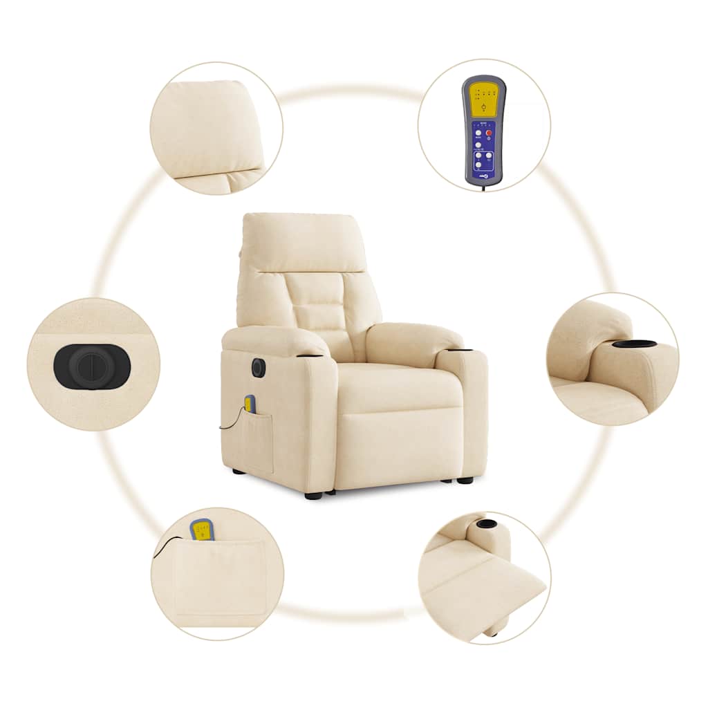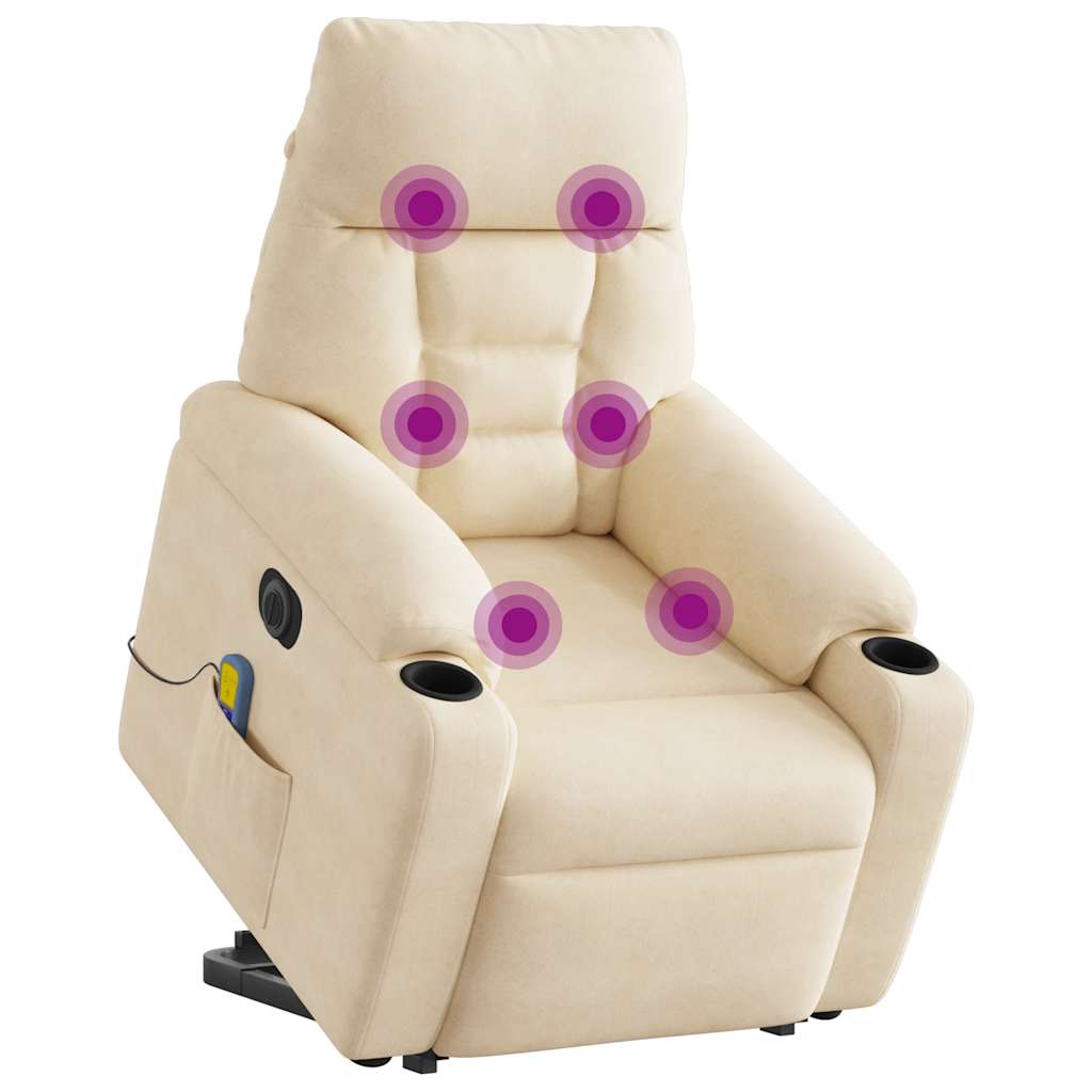 Fotoliu masaj rabatabil electric cu ridicare, bej, microfibră