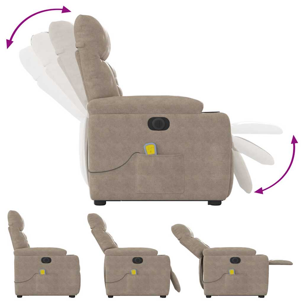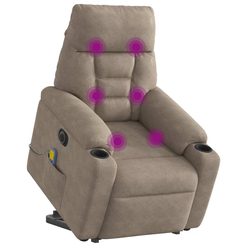 Fotoliu masaj rabatabil electric cu ridicare, taupe, microfibră