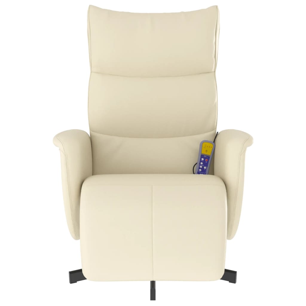 Fotoliu masaj rabatabil suport picioare, crem, piele ecologică