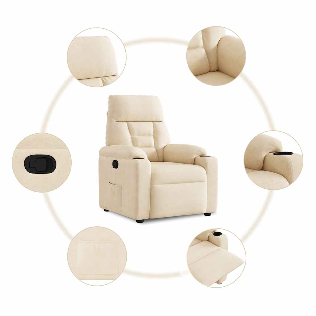 • Suporturi practice pentru pahare și buzunar lateral: Acest fotoliu include două suporturi practice de pahare pentru băuturi și un buzunar lateral pentru a vă păstra telecomanda sau alte articole esențiale la îndemână.