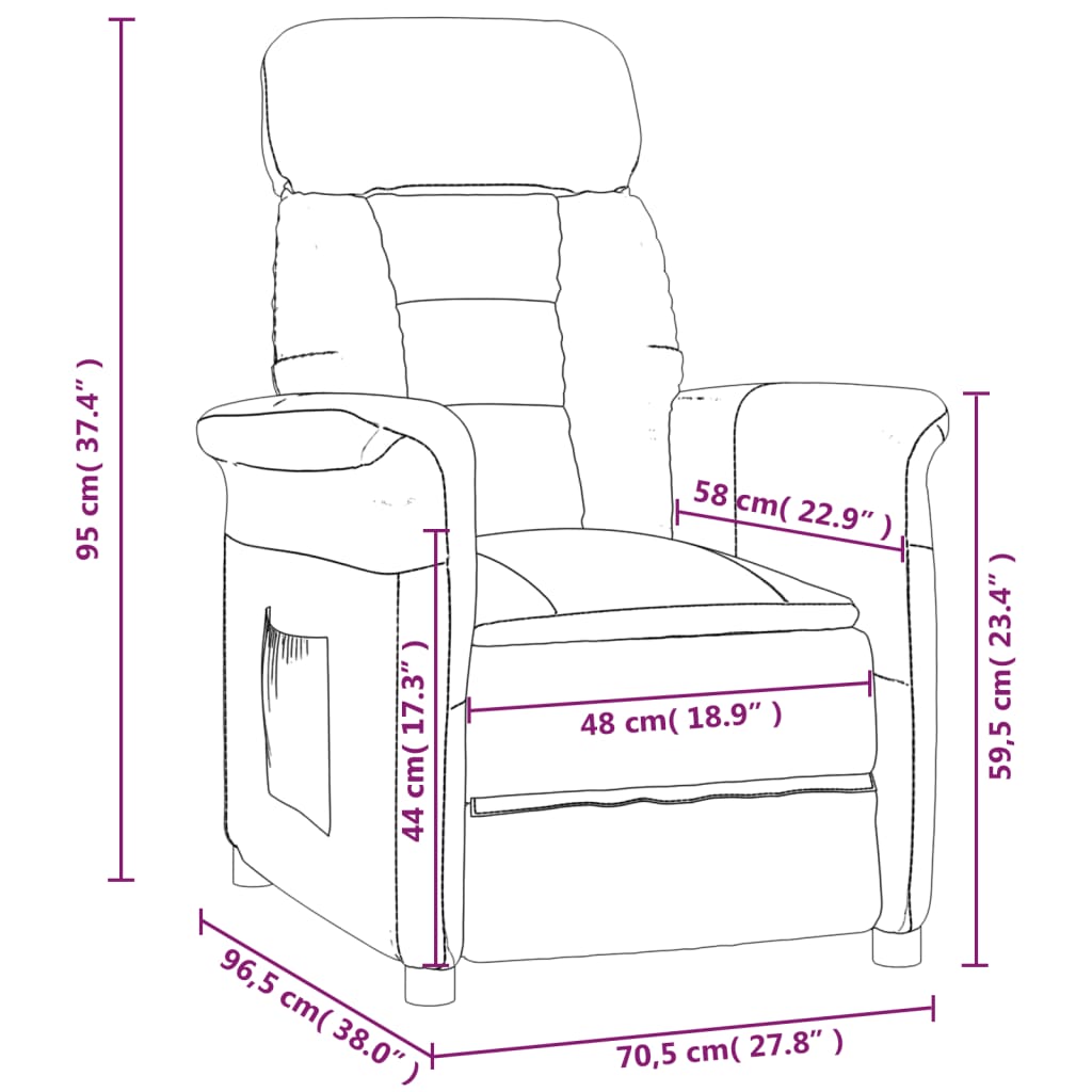 • Dimensiuni în poziția de ședere: 70,5 x 96,5 x 95 cm (l x ad. x î)