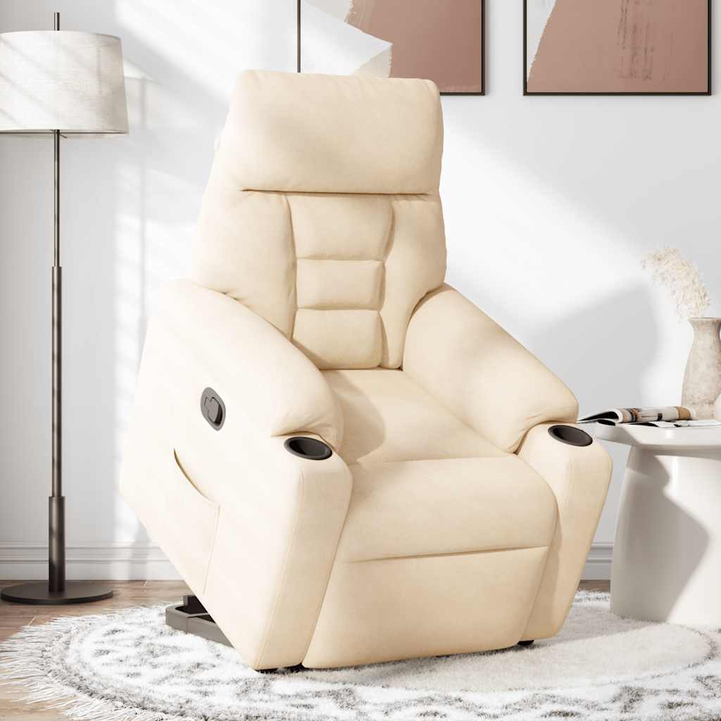 Fotoliu rabatabil cu ridicare, bej, microfibră