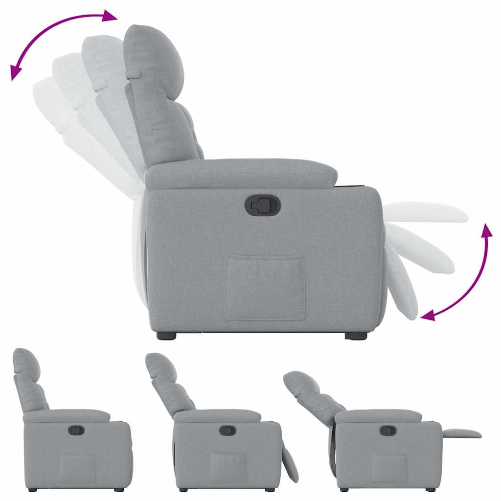 Fotoliu rabatabil cu ridicare, gri deschis, material textil