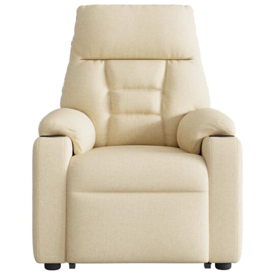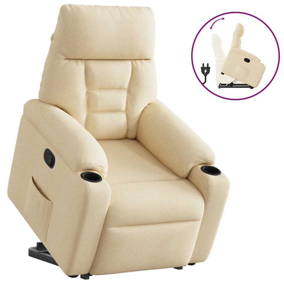 Fotoliu rabatabil cu ridicare pe verticală, crem, textil