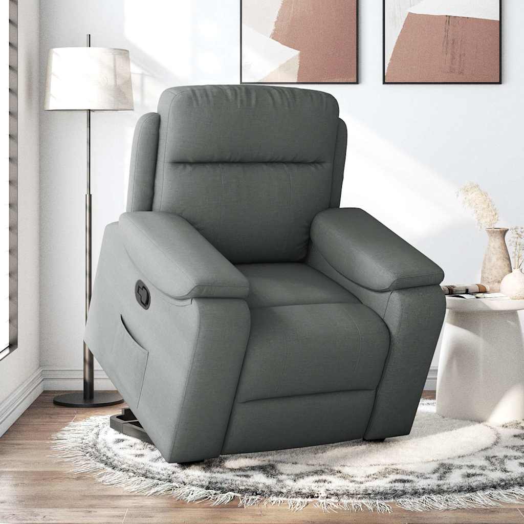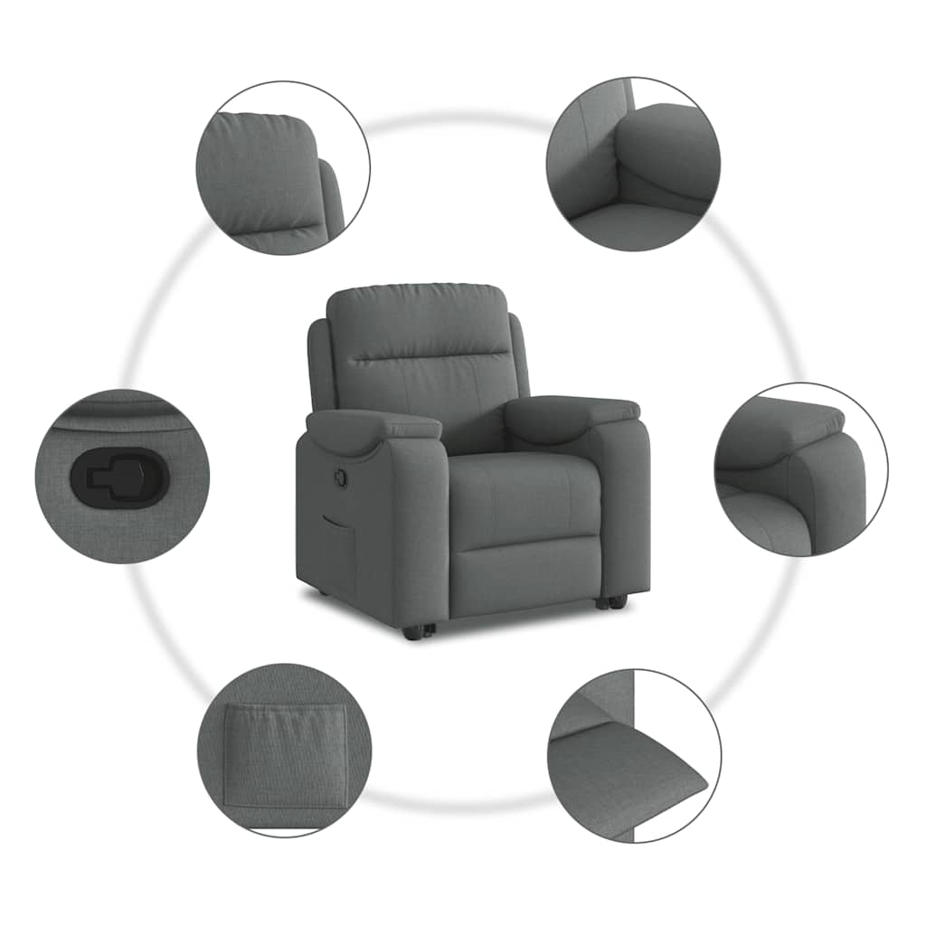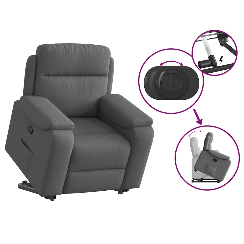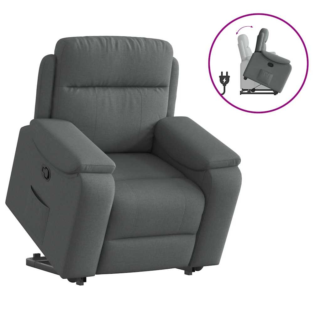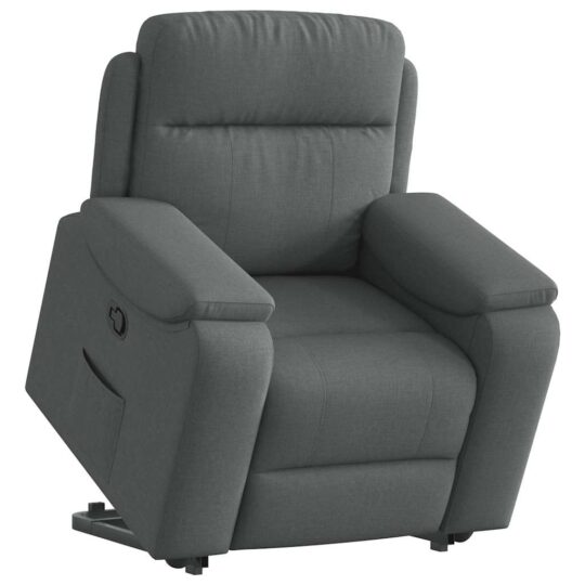 Fotoliu rabatabil cu ridicare pe verticală, gri închis, textil