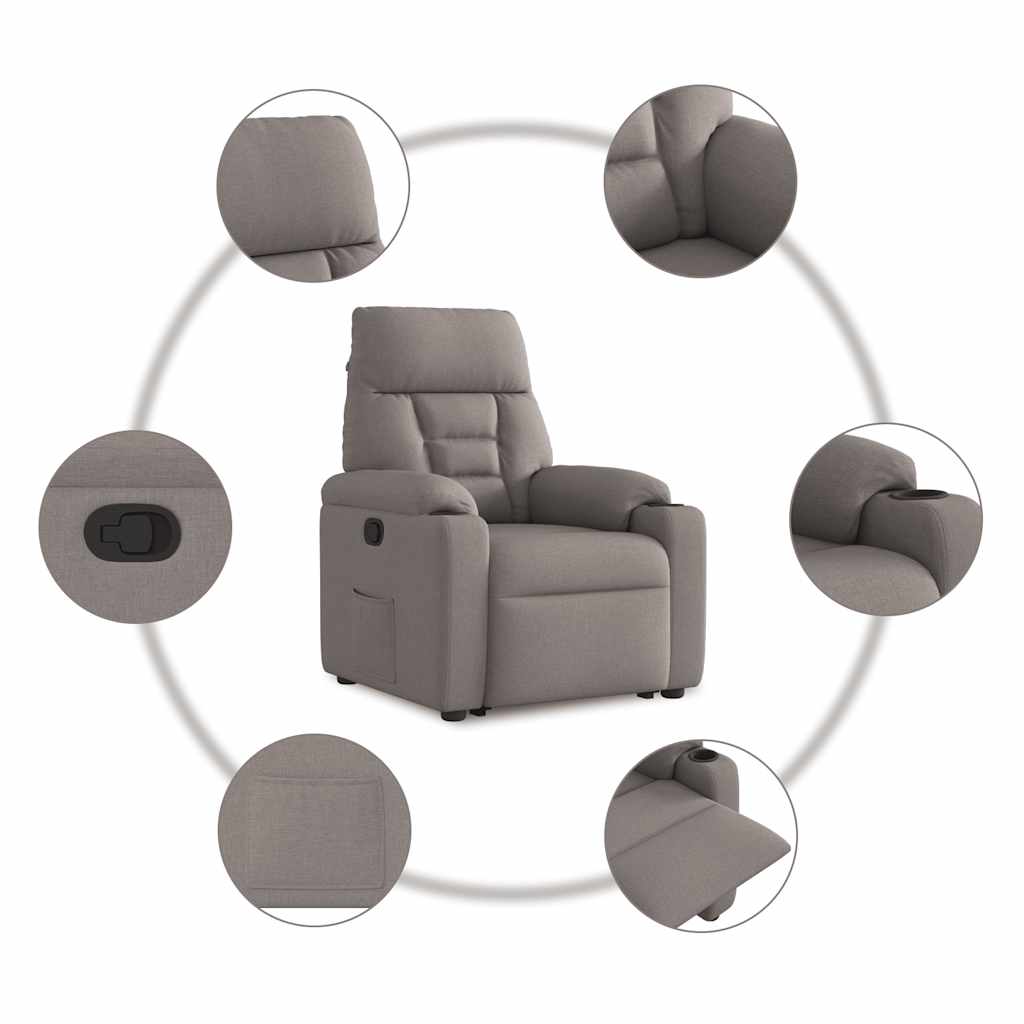 Fotoliu rabatabil cu ridicare pe verticală, gri taupe, textil