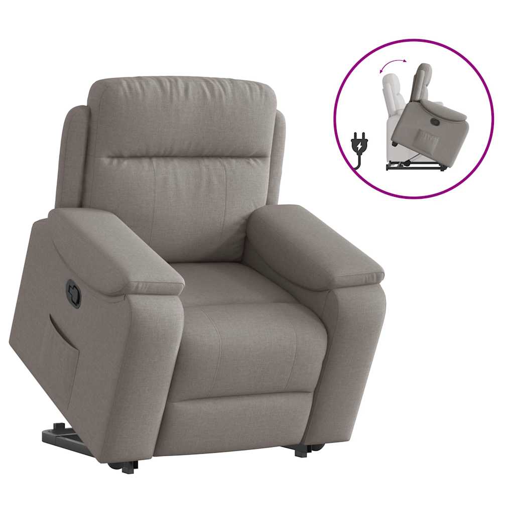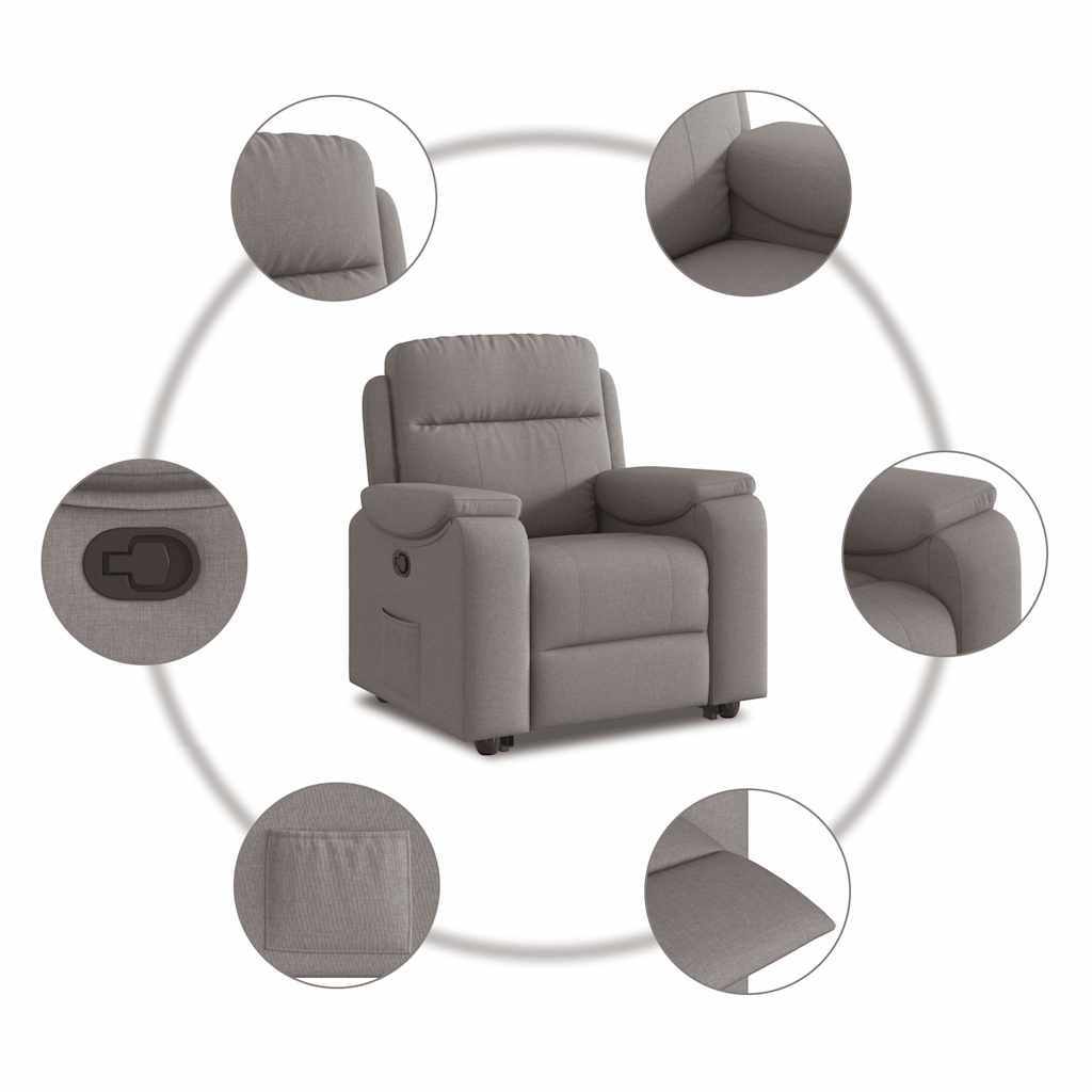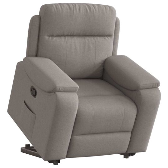 Fotoliu rabatabil cu ridicare pe verticală, gri taupe, textil
