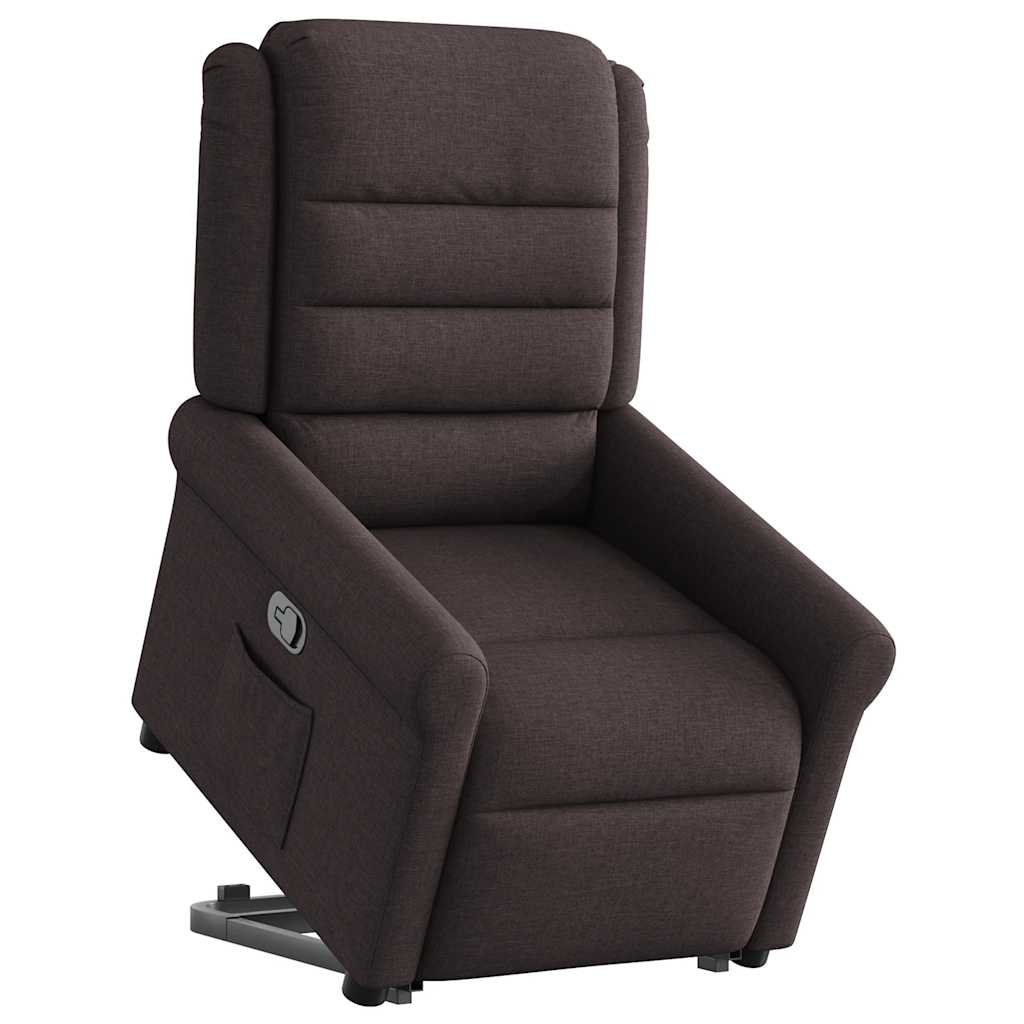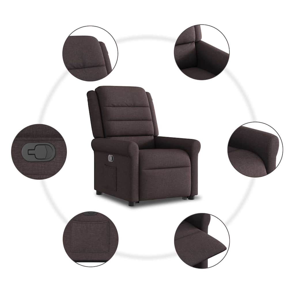 Fotoliu rabatabil cu ridicare pe verticală, maro închis, textil