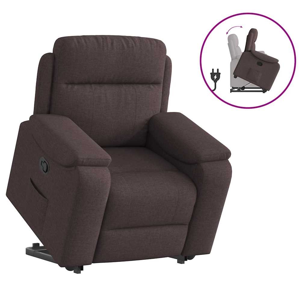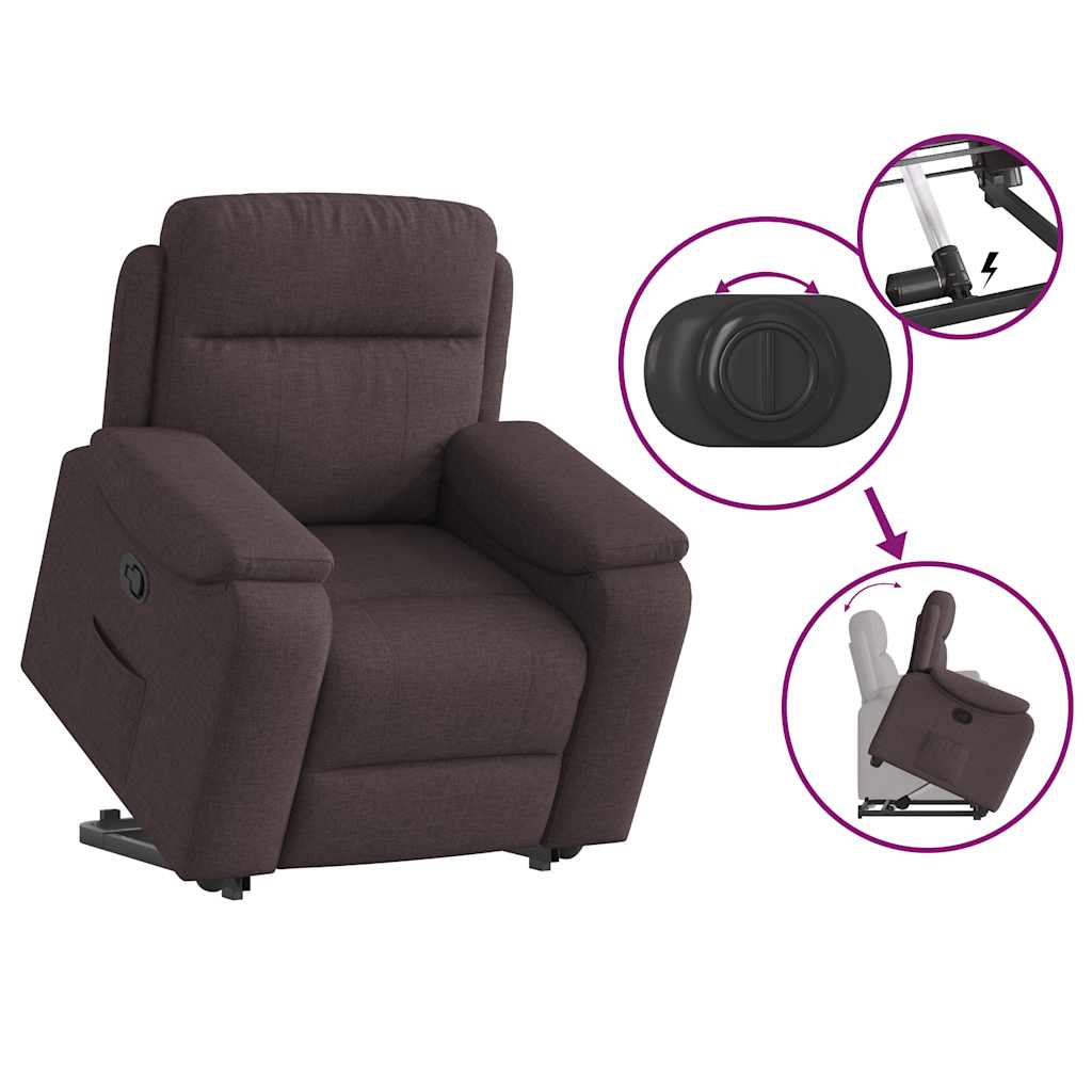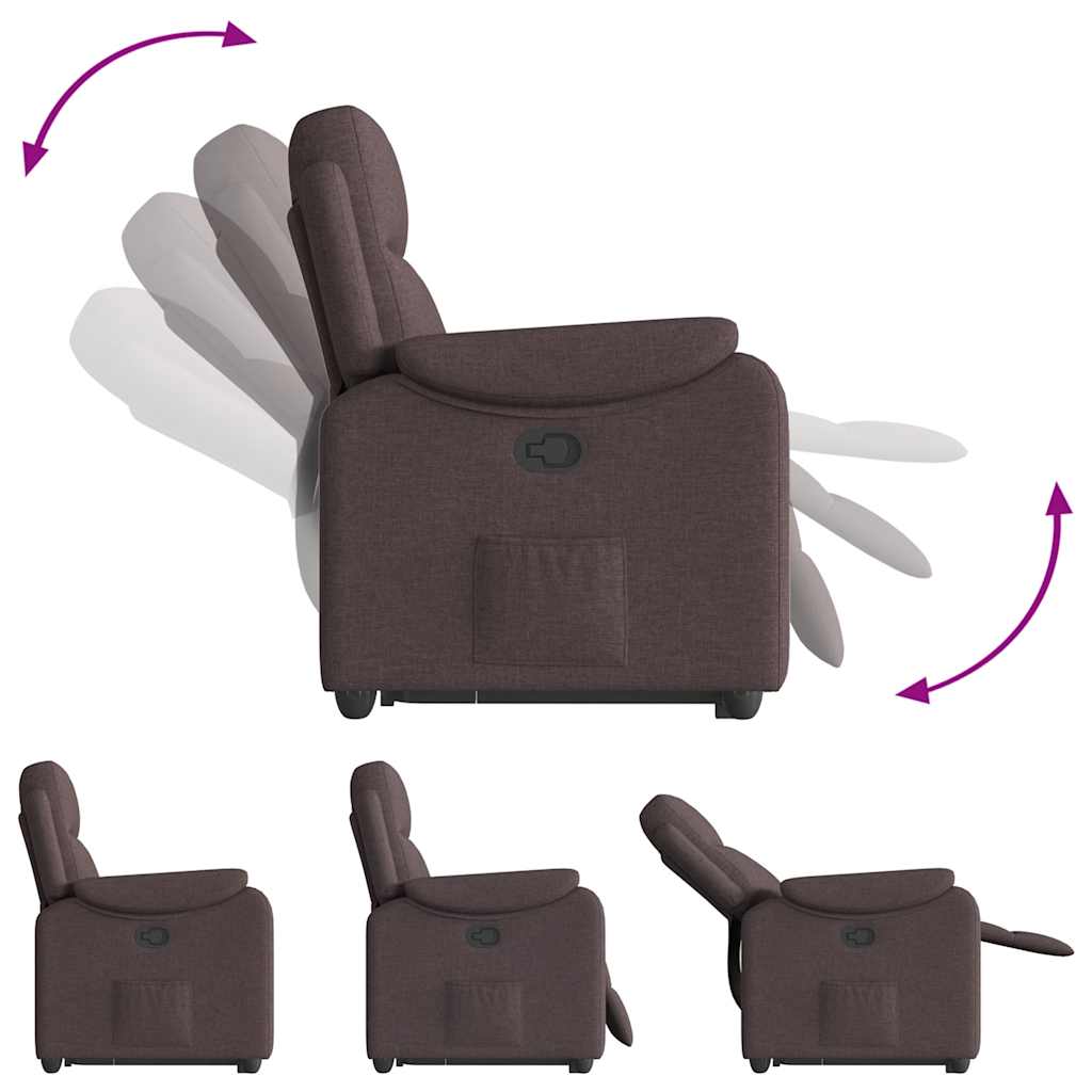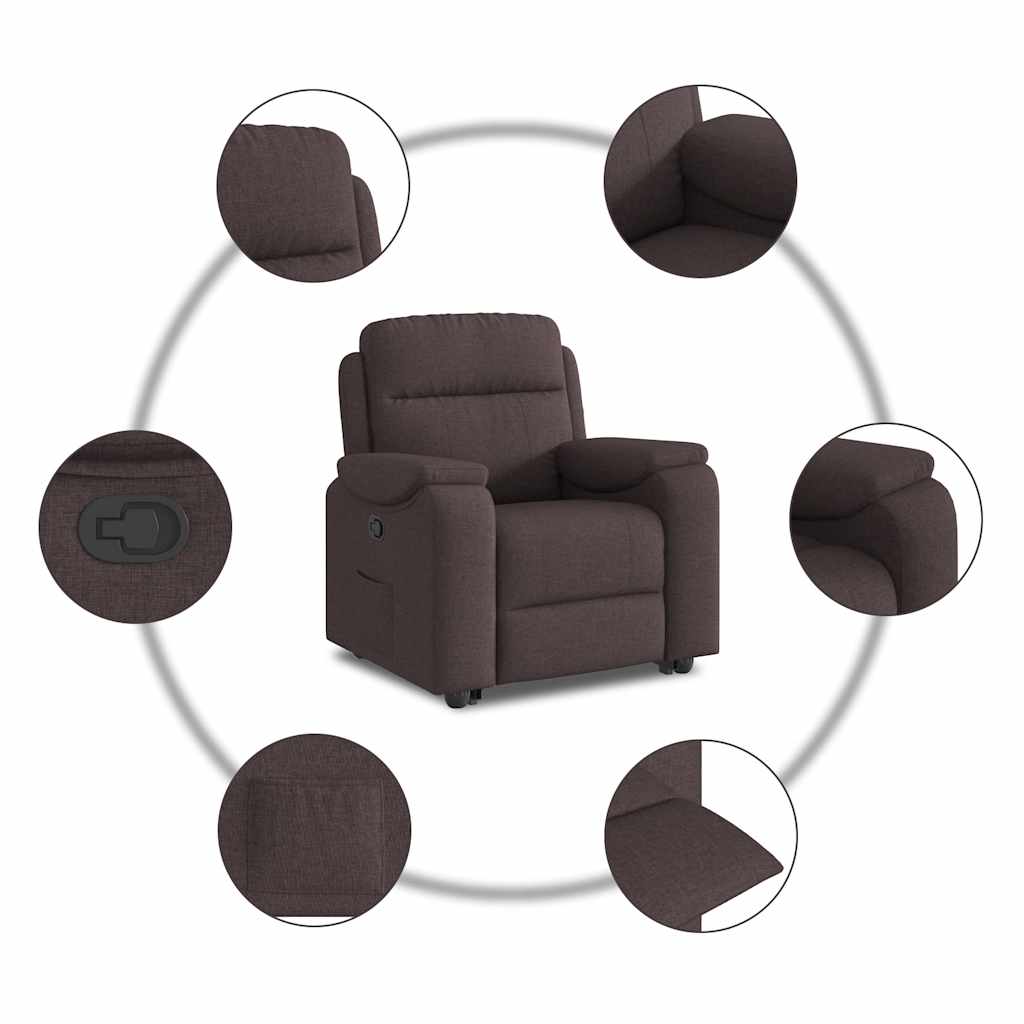 Fotoliu rabatabil cu ridicare pe verticală, maro închis, textil