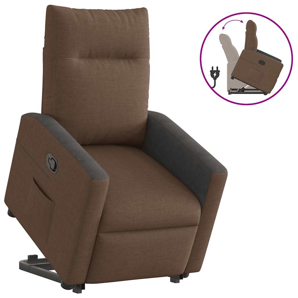 Fotoliu rabatabil cu ridicare pe verticală, maro, textil