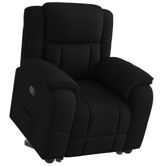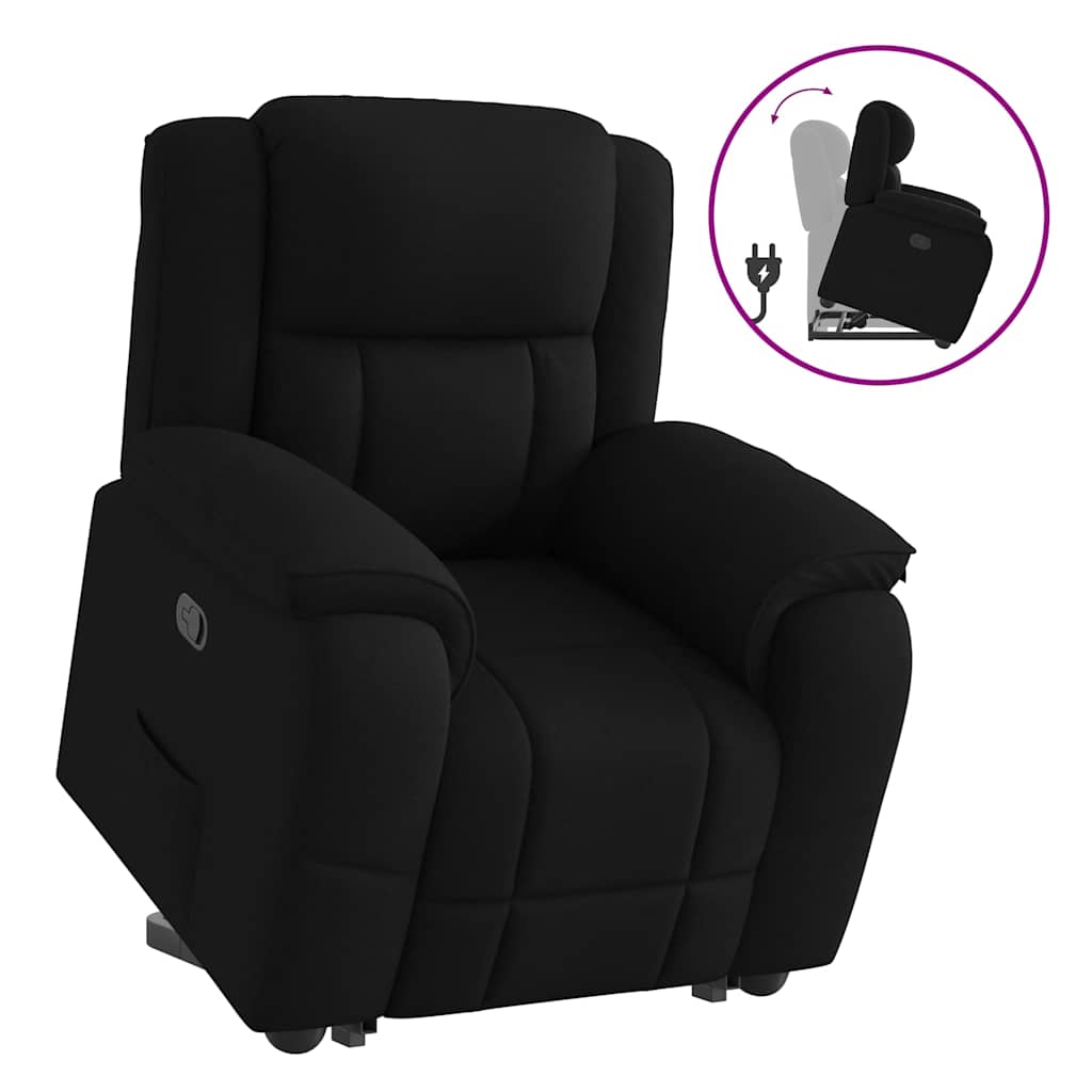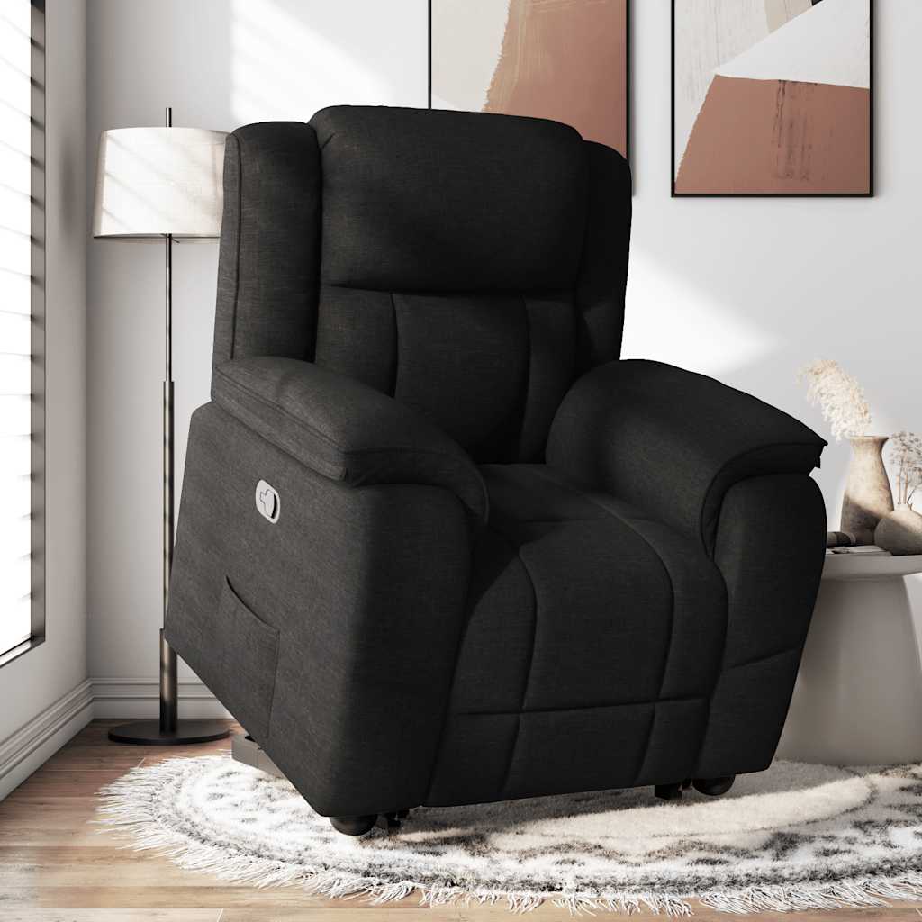 Fotoliu rabatabil cu ridicare pe verticală, negru, textil