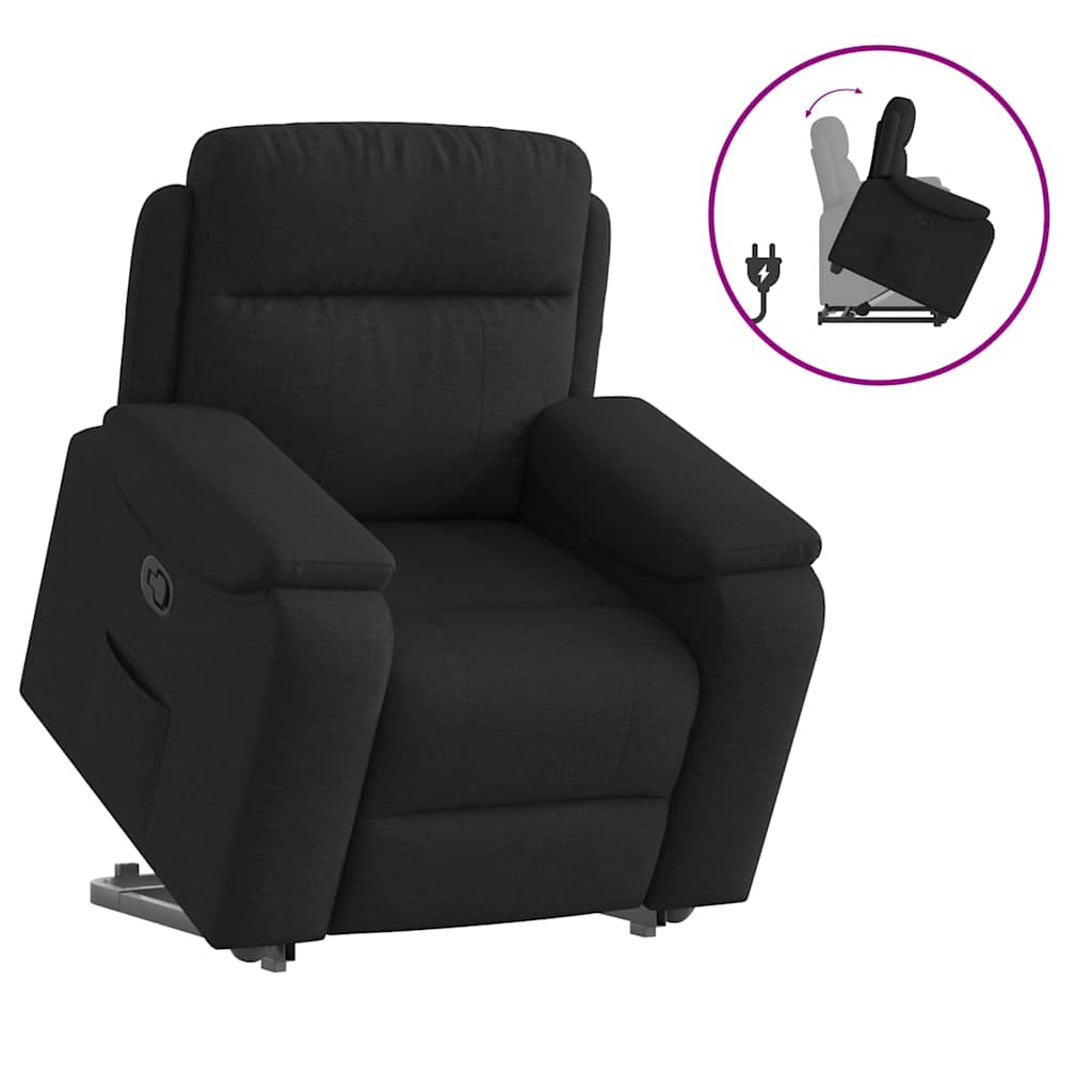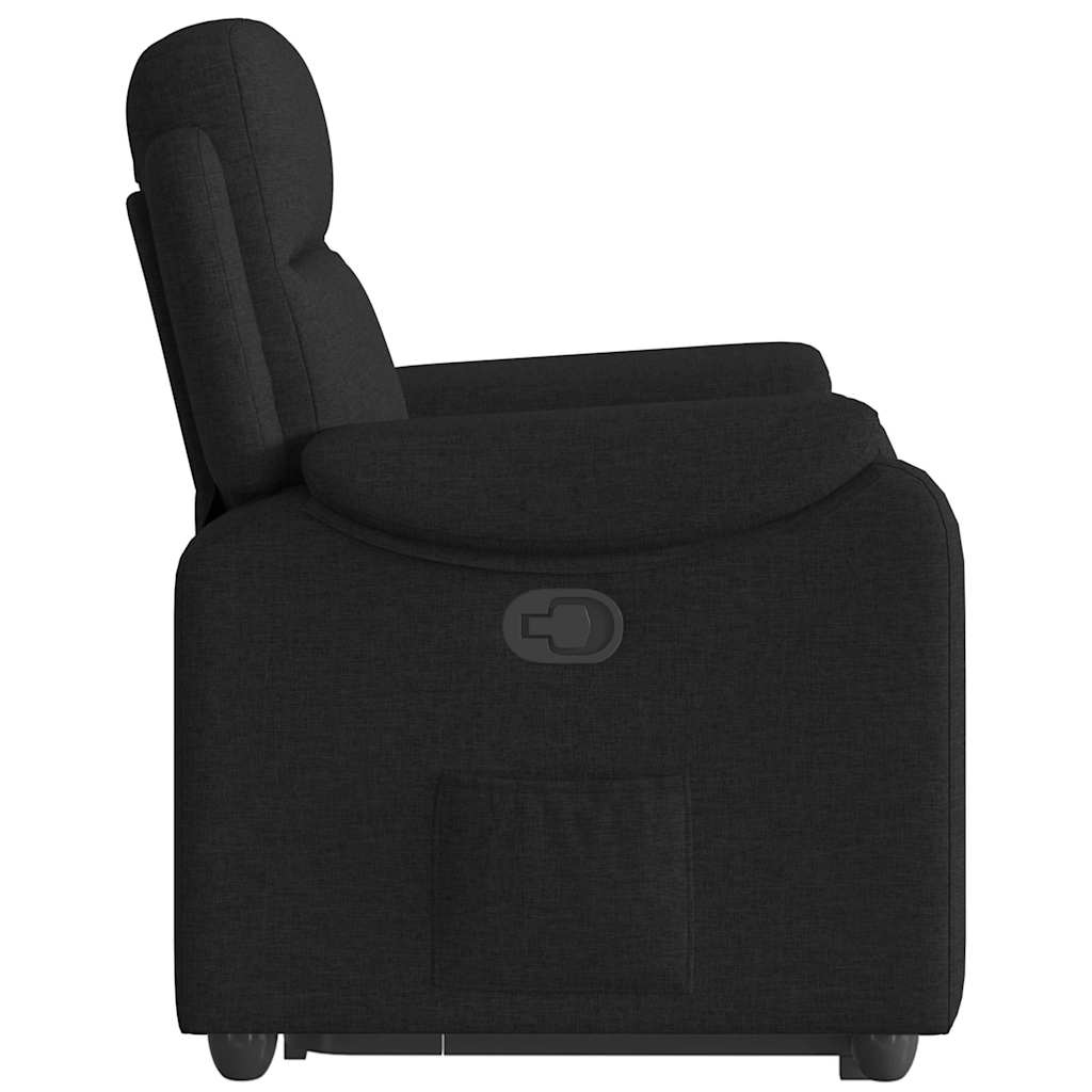 Fotoliu rabatabil cu ridicare pe verticală, negru, textil