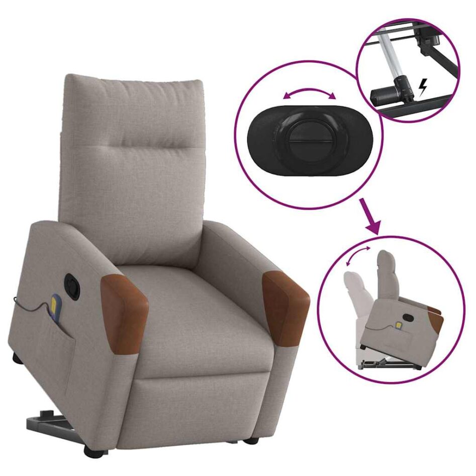 Fotoliu rabatabil de masaj cu ridicare, gri taupe, textil