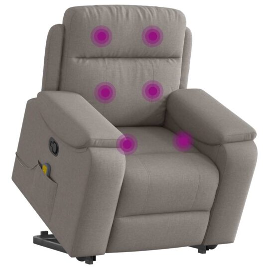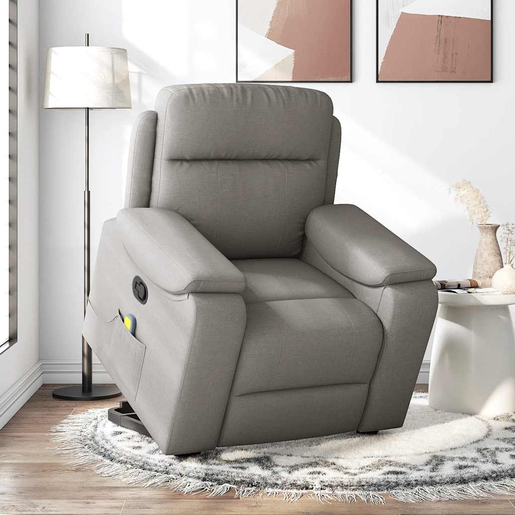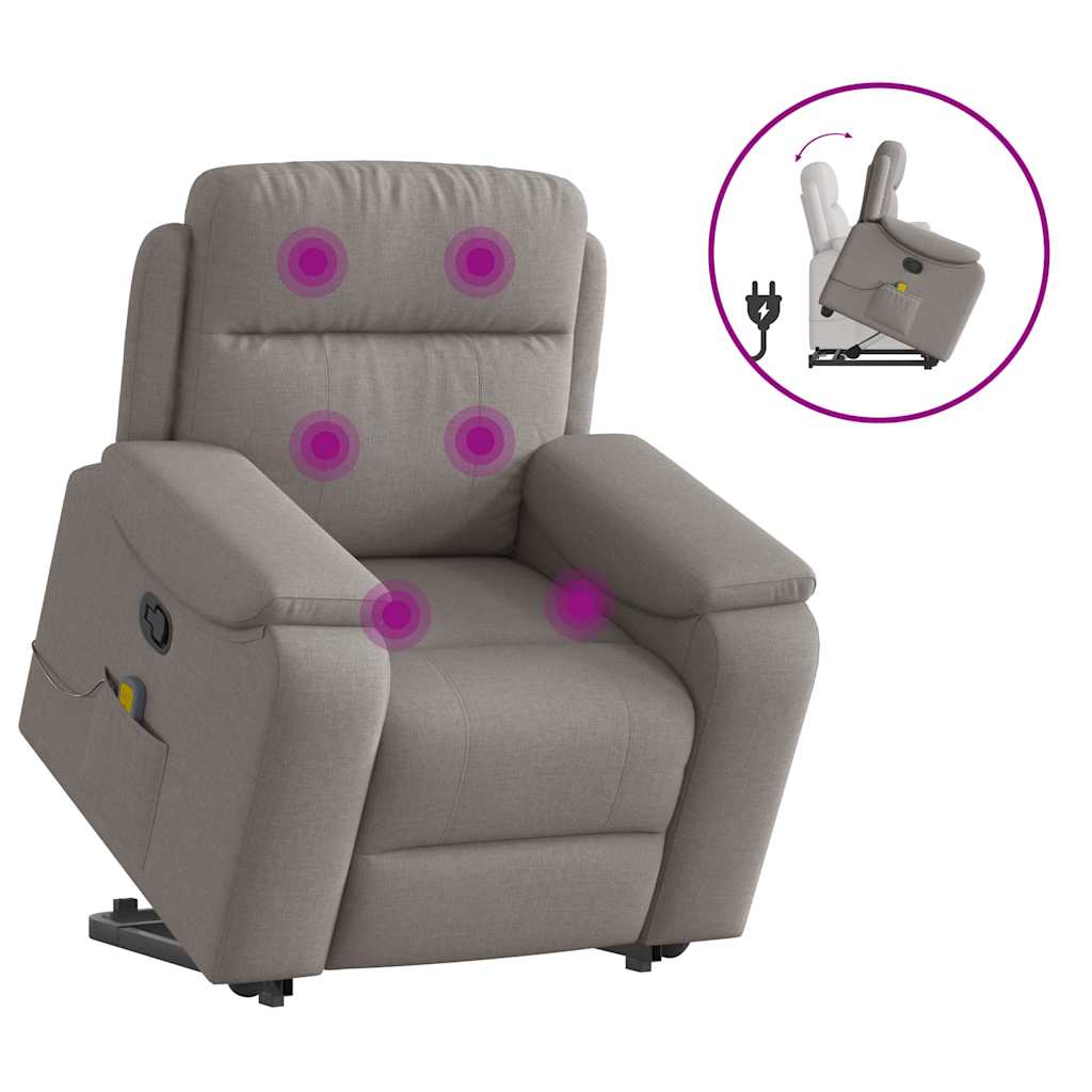 Fotoliu rabatabil de masaj cu ridicare, gri taupe, textil