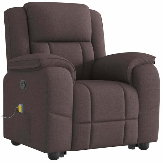 Fotoliu rabatabil de masaj, cu ridicare, maro închis, textil