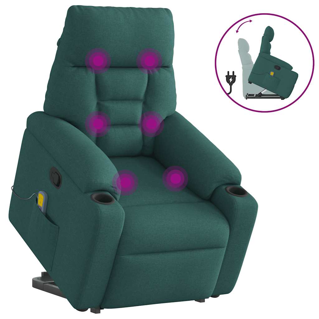 Fotoliu rabatabil de masaj, cu ridicare, verde închis, textil