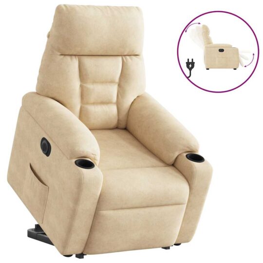 Fotoliu rabatabil electric cu ridicare, crem, microfibră
