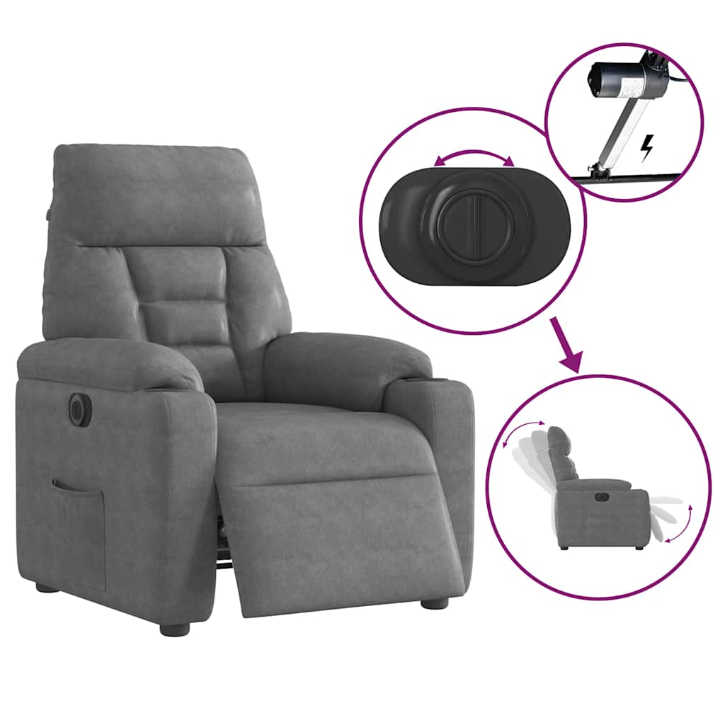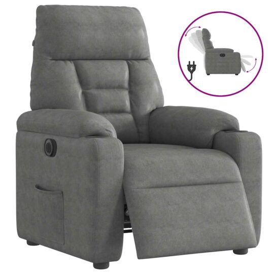Fotoliu rabatabil electric, gri deschis, microfibră