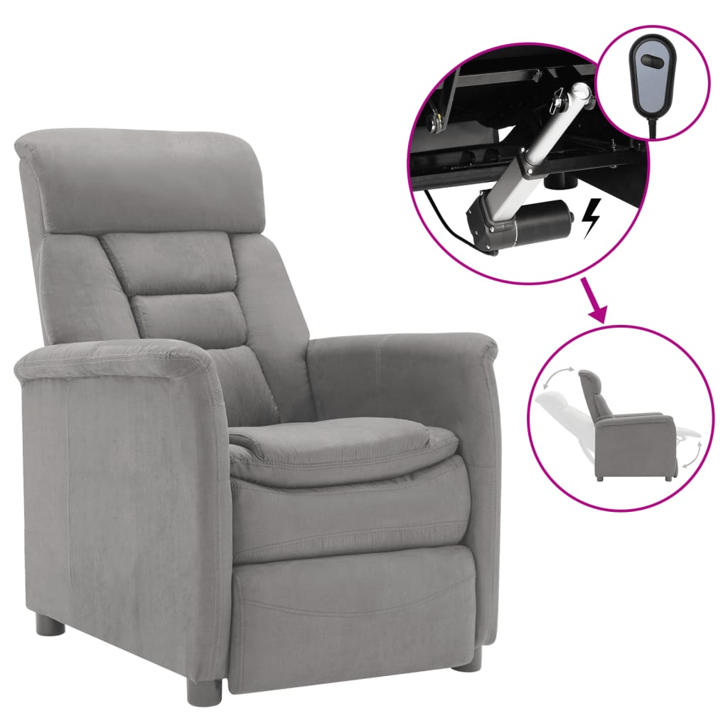 Fotoliu rabatabil electric gri deschis piele întoarsă ecologică