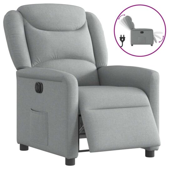 Fotoliu rabatabil electric, gri deschis, textil
