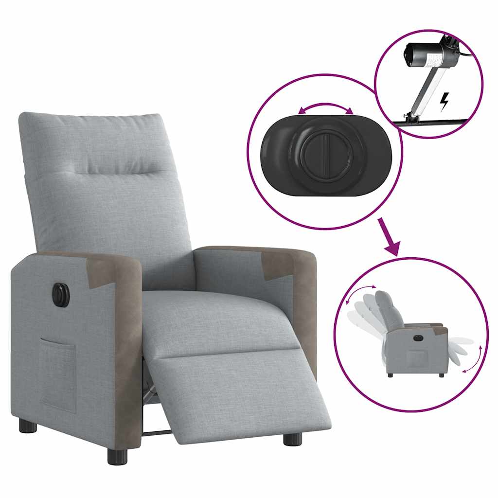 Fotoliu rabatabil electric, gri deschis, textil