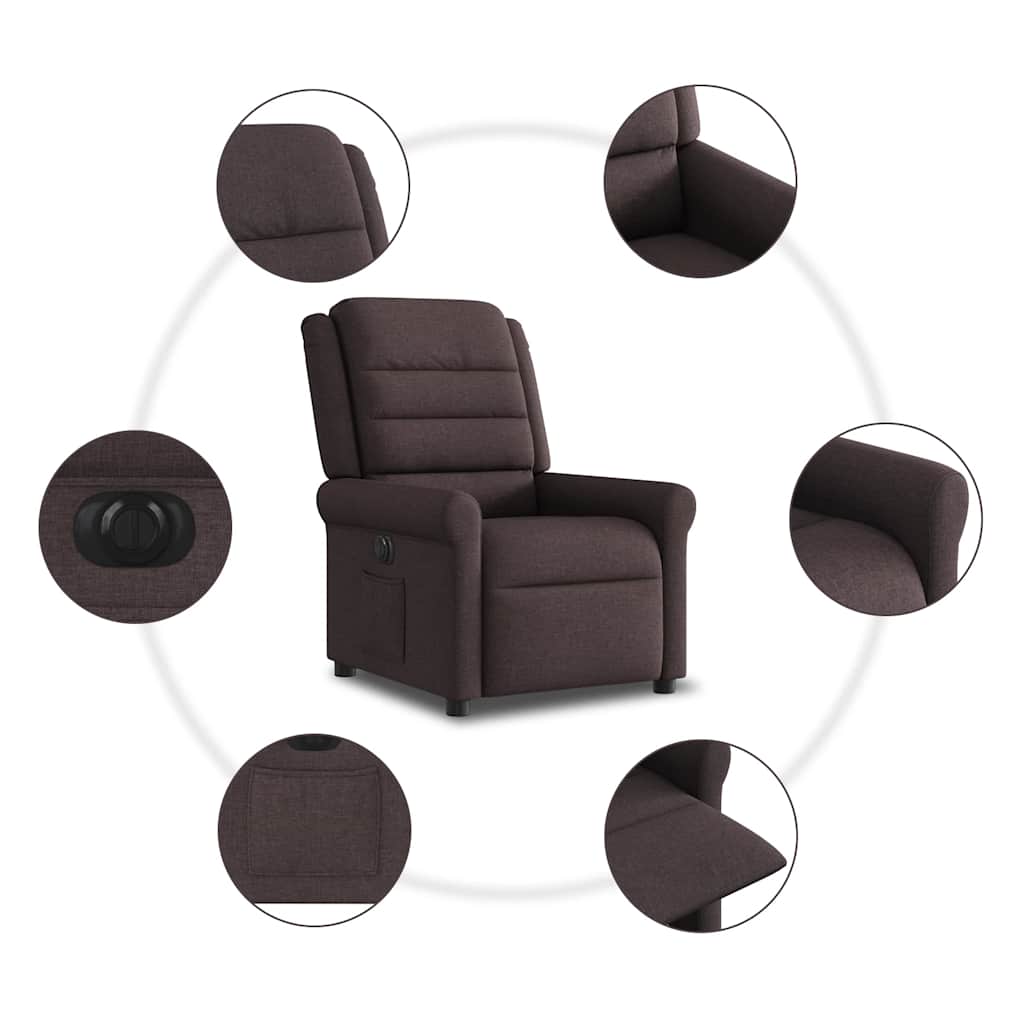 Fotoliu rabatabil electric, maro închis, material textil