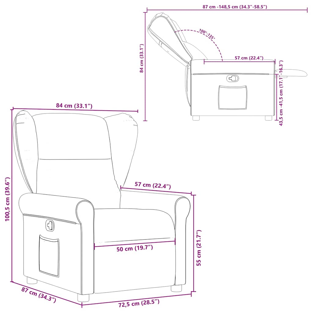 - Dimensiuni în poziție întins: 72,5 x 148,5 x 84 cm (l x ad. x î)