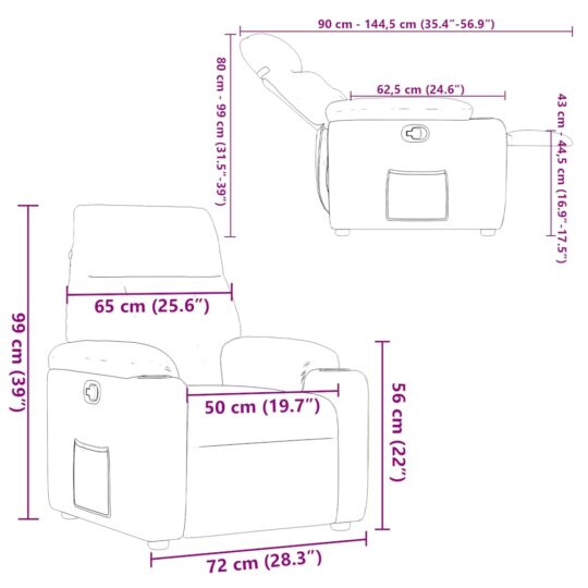 - Dimensiuni scaun: 72 x 90 x 99 cm (l x a x h)