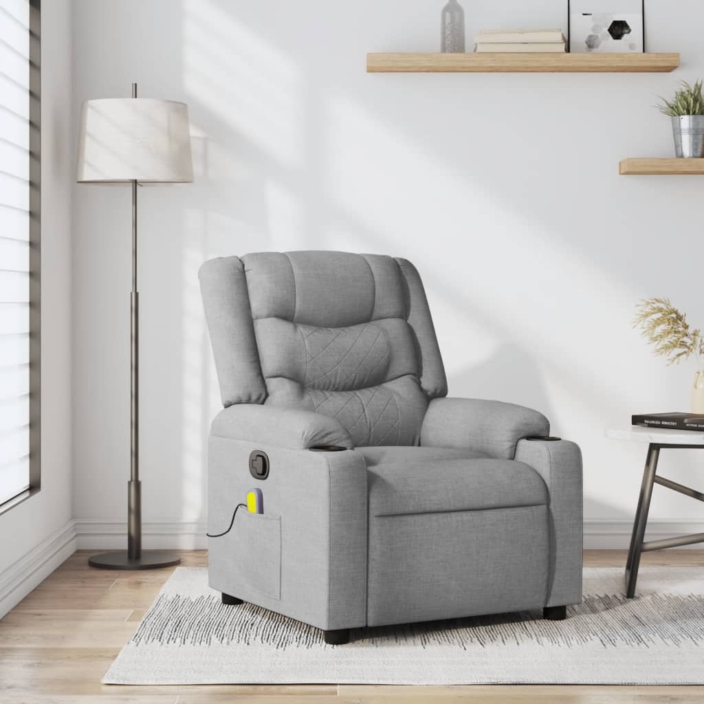 Fotoliu reclinabil cu masaj, gri deschis, material textil