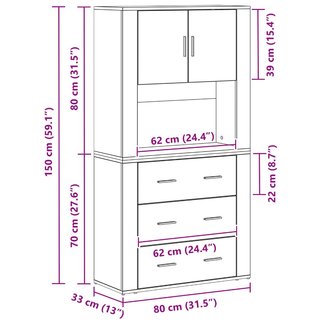 - Dimensiuni generale: 80 x 33 x 150 cm (L x l x î)