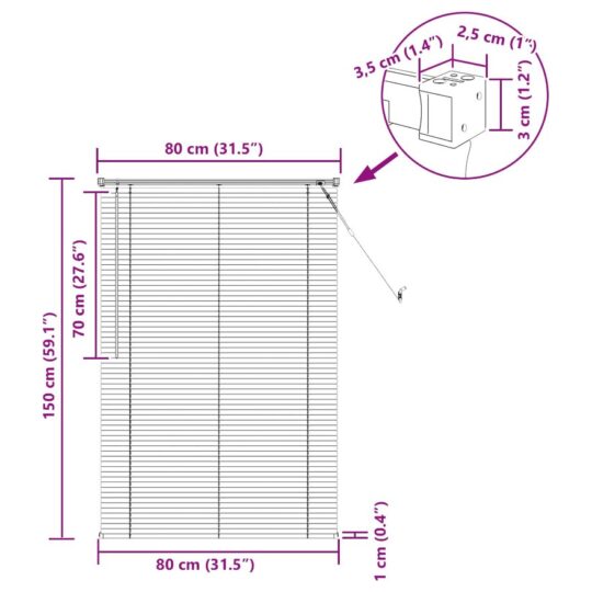 Jaluzea venetiană Manual Ajustabil Gri argintie 150 x 80 cm PVC
