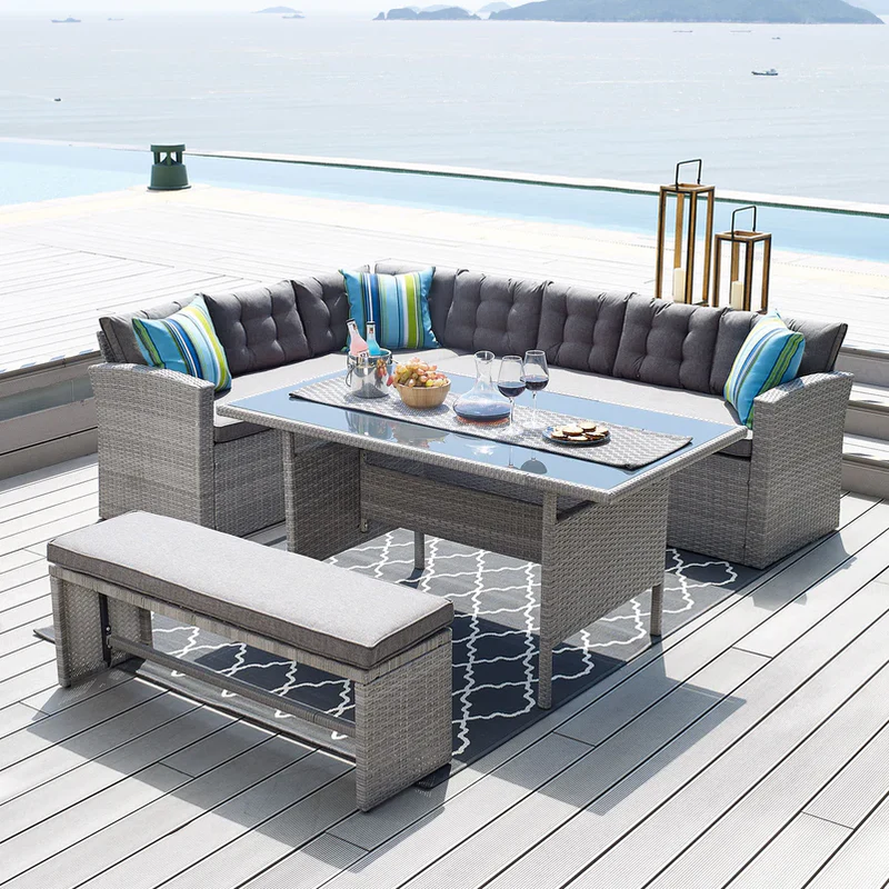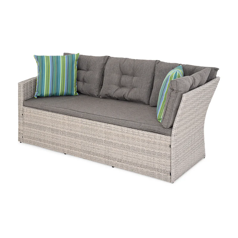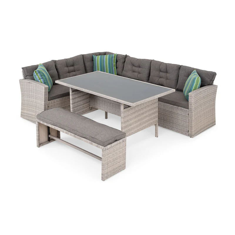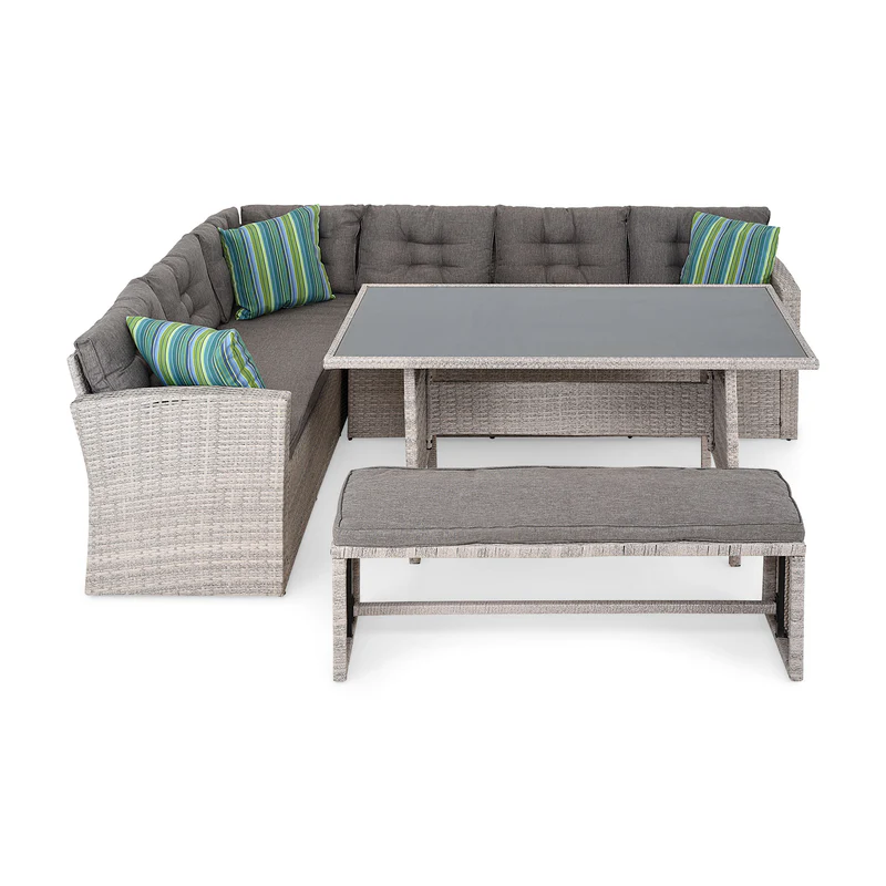Set mobilier terasă și grădină, Laguna. Creați-vă propria oază de liniște și confort chiar acasă, în grădina sau pe terasa voastră. Setul din gama Laguna conține două canapele spațioase, o masă și un taburet, astfel pune la dispoziție un spațiu generos, pentru toată familia. Zilele petrecute în aer liber au acum un aer și mai special. În plus, cromatica respectă tonurile naturale și se va intagra perfect în imaginea fin exteriorul casei. Realizat din structura de otel vopsita in camp electrostatic si impletita cu fibre sintetice(polipropilena) ce imita ratanul . Fibre sintetice sunt tratate impotriva razelor ultraviolete .