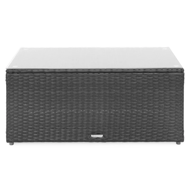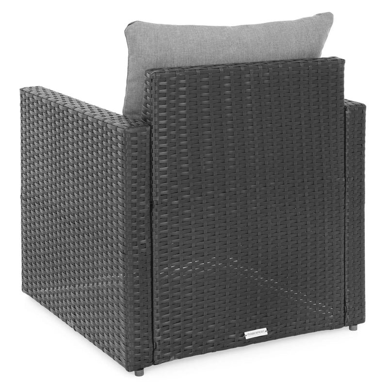 Cele două fotolii, canapeaua cât și măsuța, sunt realizate din structură solidă din oțel, vopsită în câmp electrostatic, împletită cu fibre sintetice cu protecție împotriva razelor UV ce imită ratanul. Setul include pernele îmbrăcate în țesătură din poliester cu protecție împotriva umezelii. Husele sunt prevăzute cu fermoar pentru o îndepărtare ușoară pentru curățat. Topul măsuței este realizat din sticlă securizată.