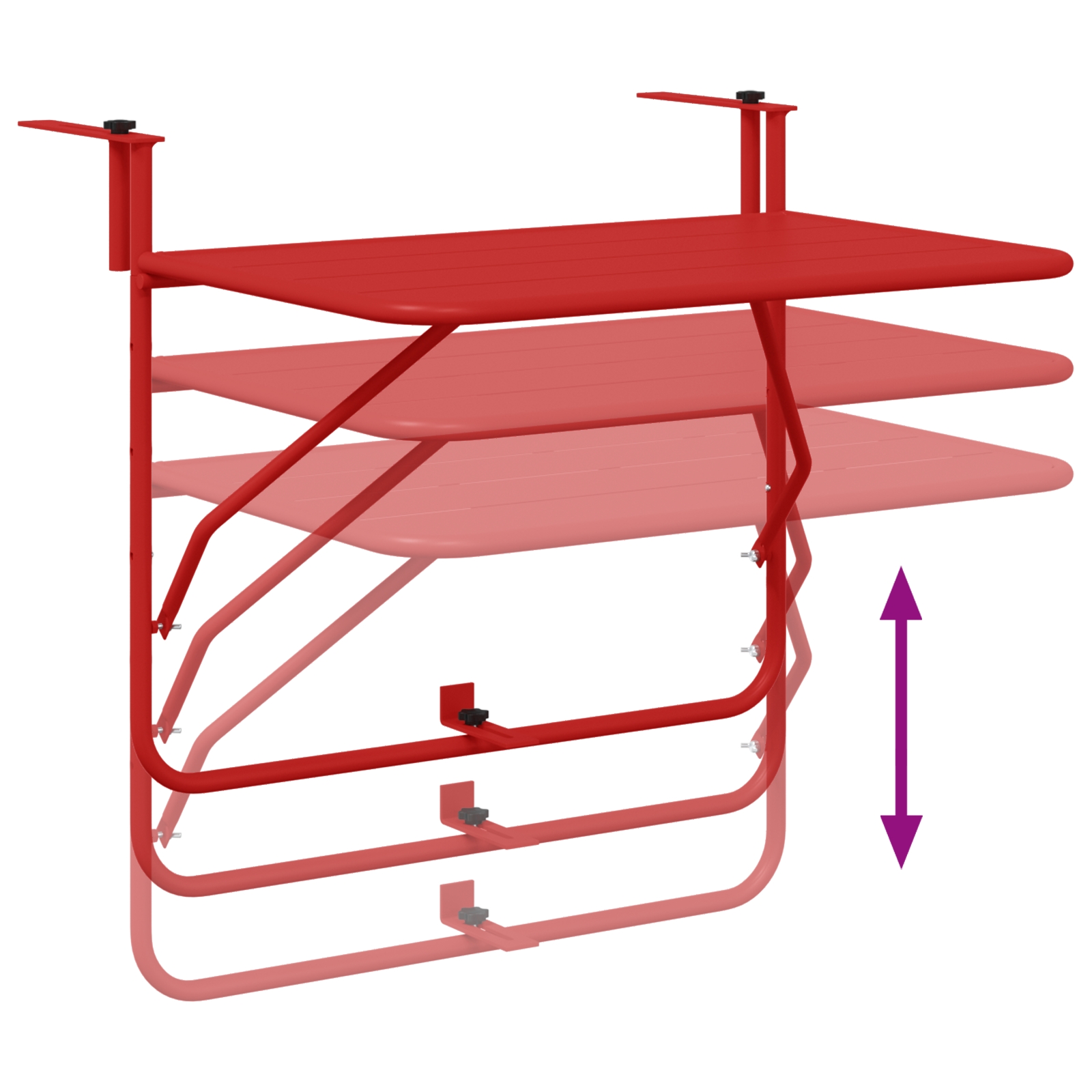 Masă de balcon suspendată pliabilă roșie 60×40 cm din oțel
