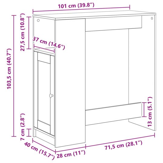 - Dimensiuni generale: 101 x 40 x 103,5 cm (L x l x î)