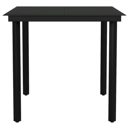 Masă de bucătărie de grădină, negru, 80x80x74 cm, oțel/sticlă