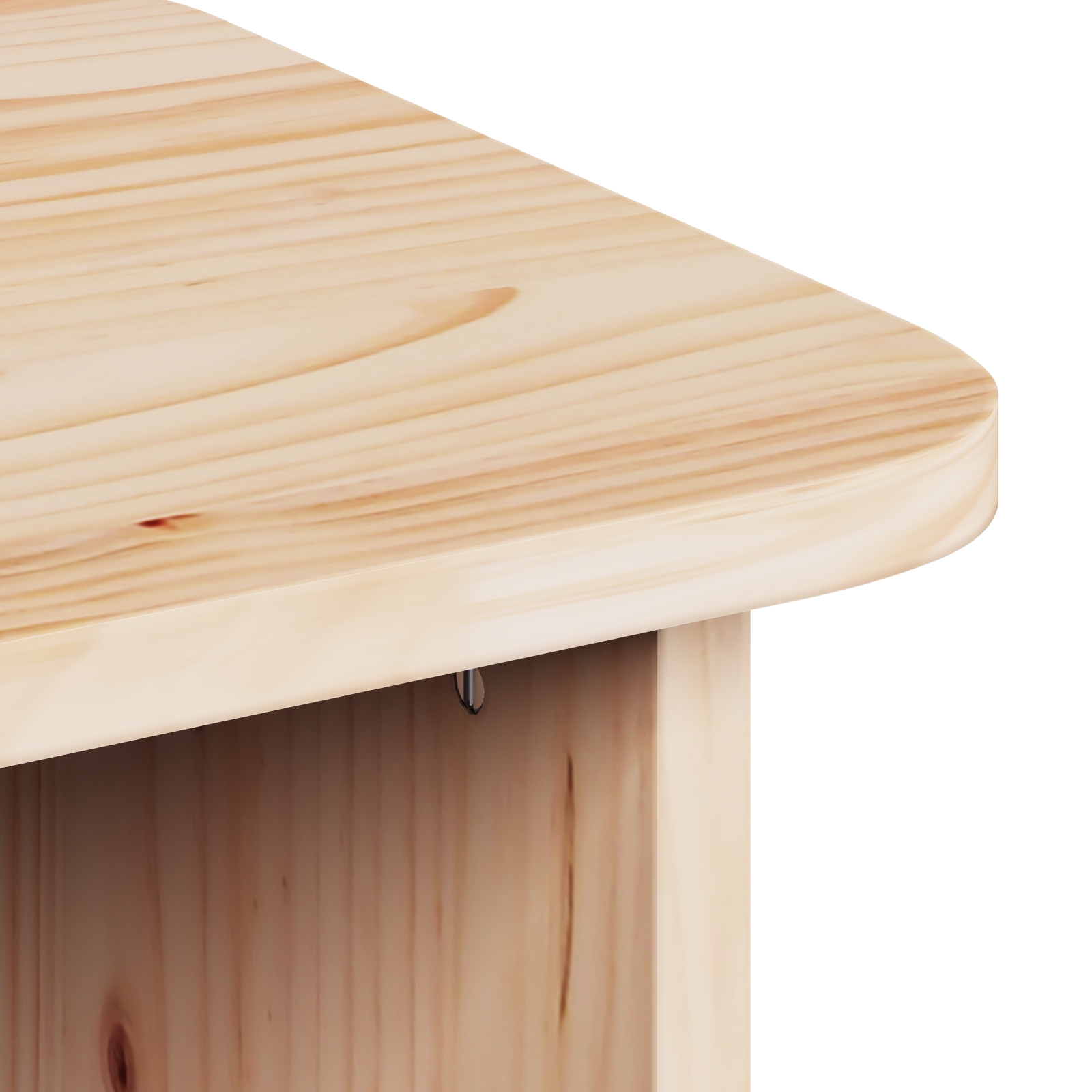 - Construcție din Pin Masiv Masa asta e făcută doar din lemn masiv de pin, super frumos, puternic și durabil. Asta înseamnă că rezistă la uzură și aduce căldură datorită fibrăi frumoase.