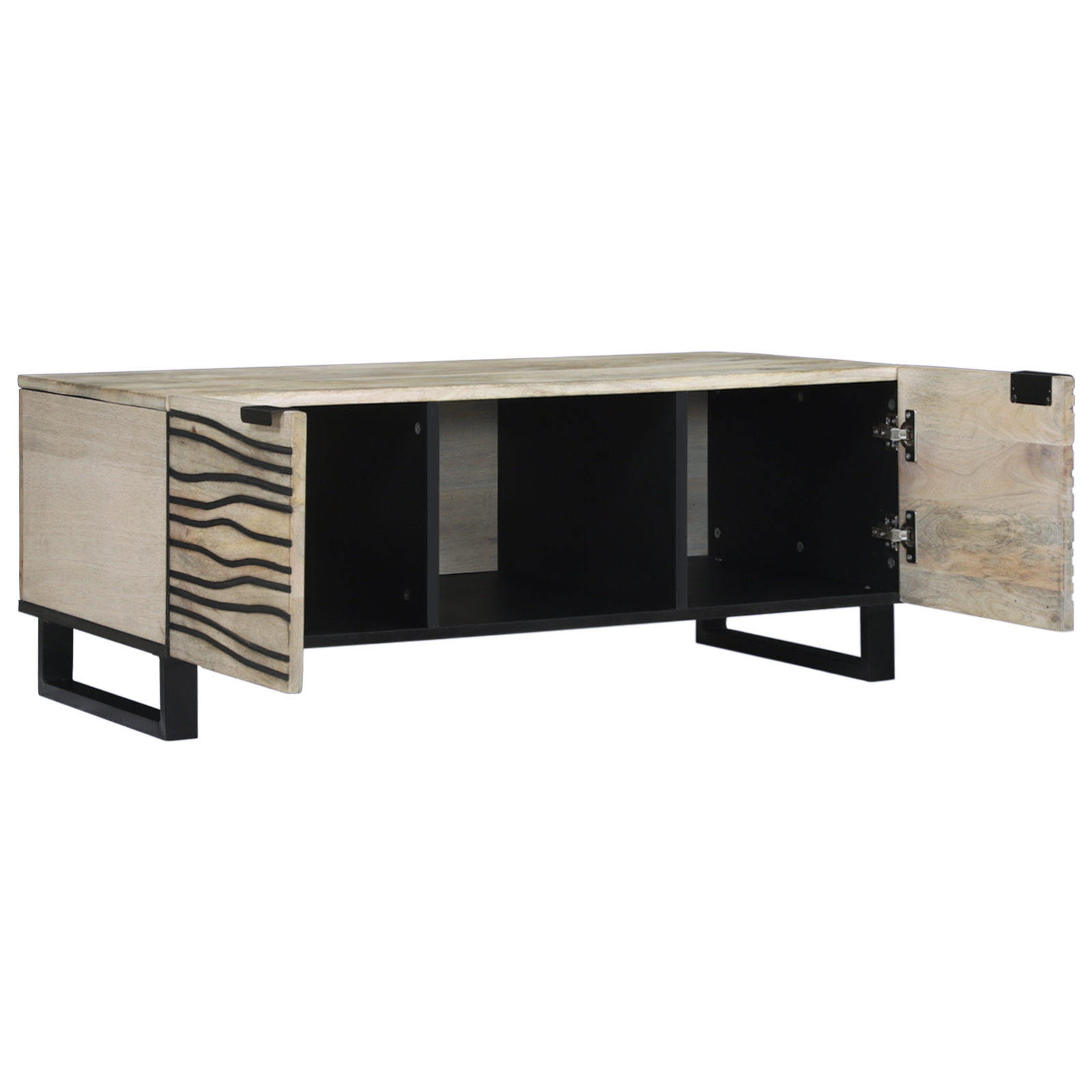 Masă de cafea Alb, Negru 100 x 54 x 40 cm Lemn masiv de mango