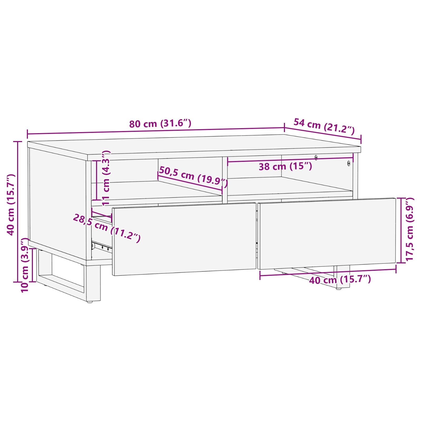 Masă de cafea Alb, Negru 80 x 54 x 40 cm Lemn masiv de mango